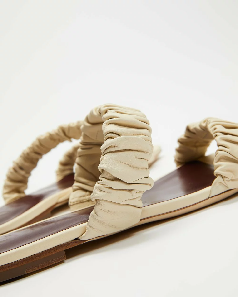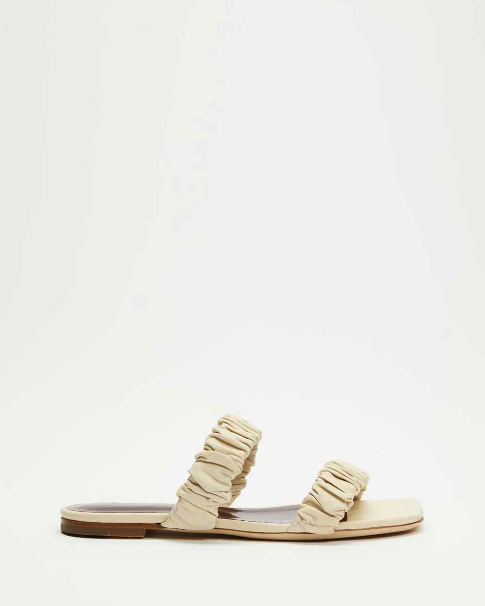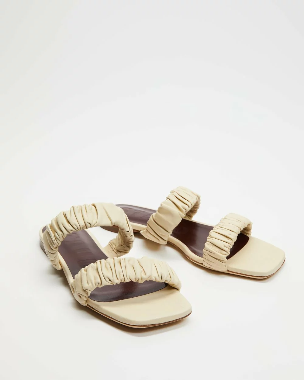 Offering fashionable footwear that’s not only accessible but empowering, LA-based brand Staud designs the Maya Ruched Sandals for monochrome lovers of leather to slip into something comfortable daily.