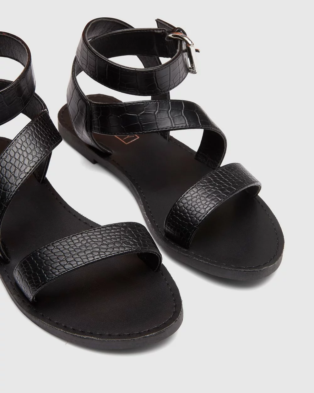 – Faux leather croc upper- Black hue- Round toe