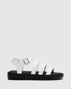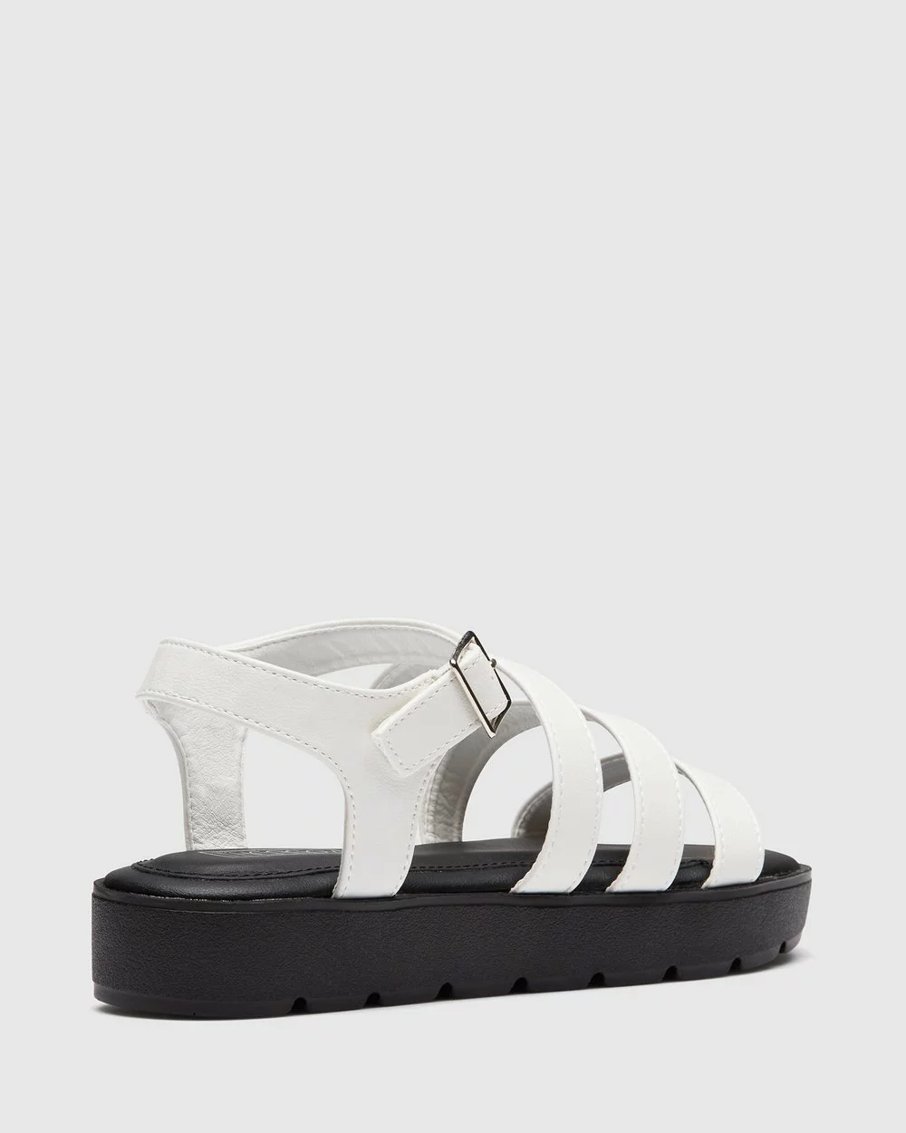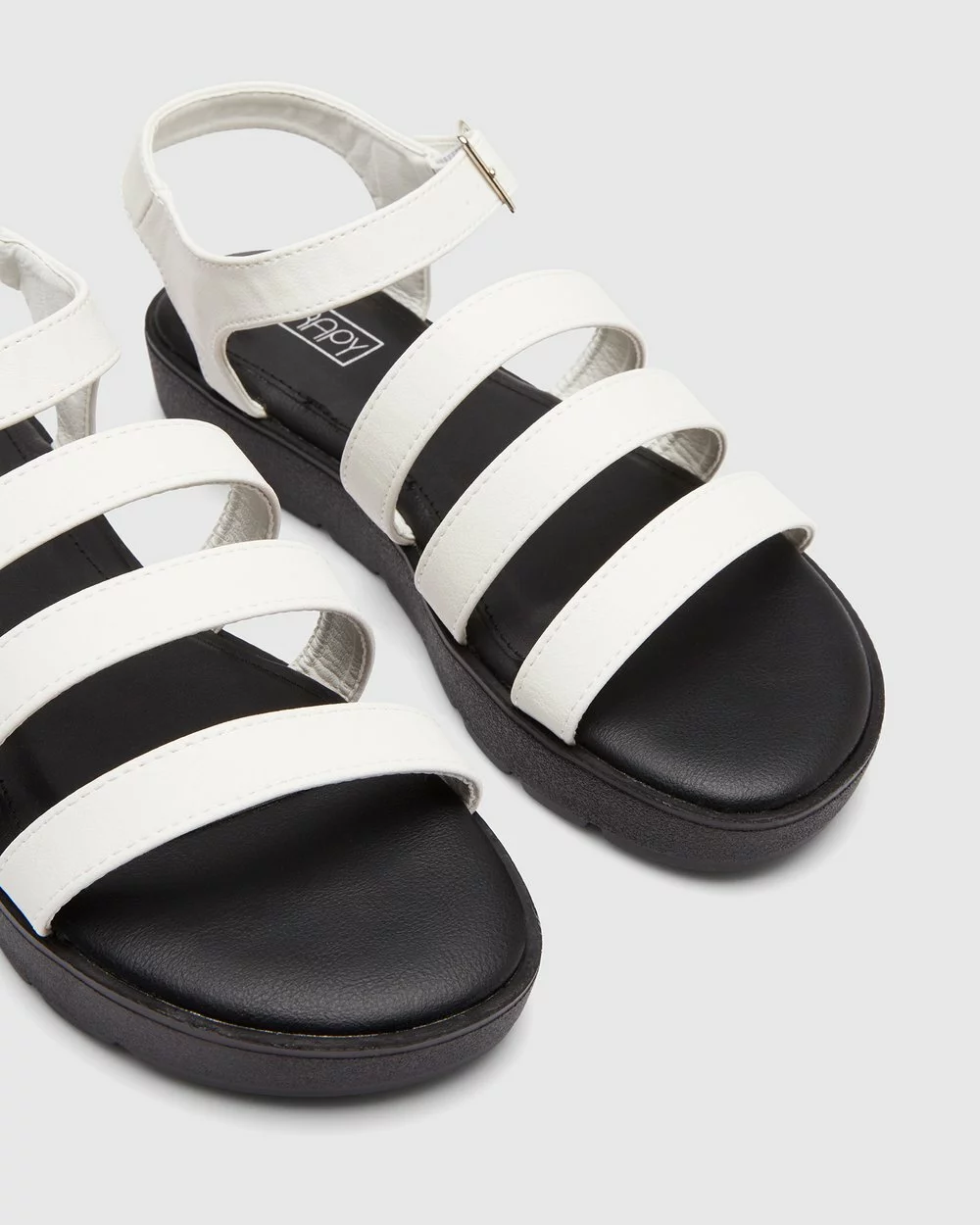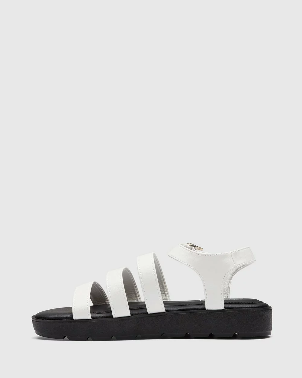 Saxon is the newest on-trend flat sandal from Therapy Shoes featuring a flat flexible outsole and a 3 strap upper with a buckle to fasten