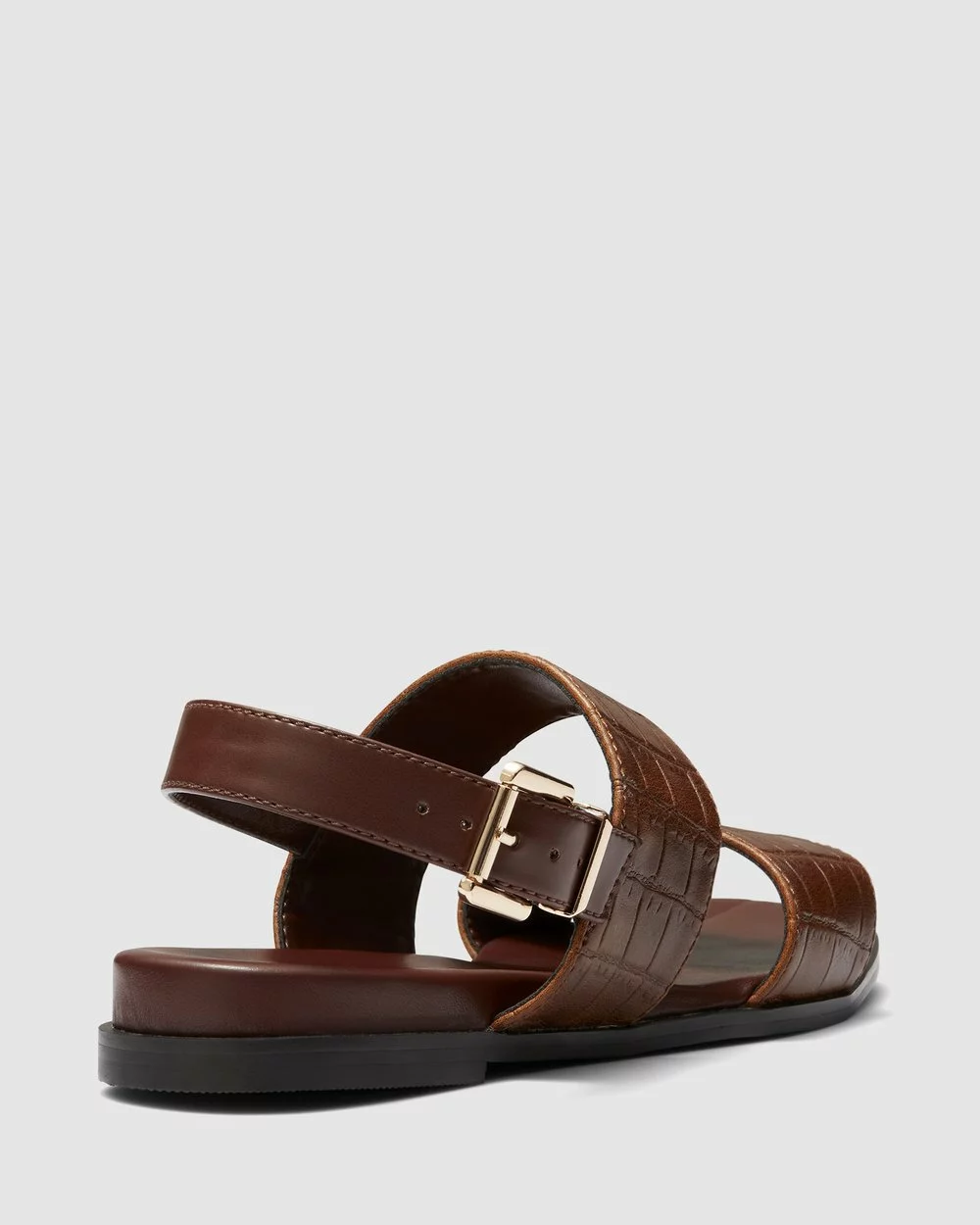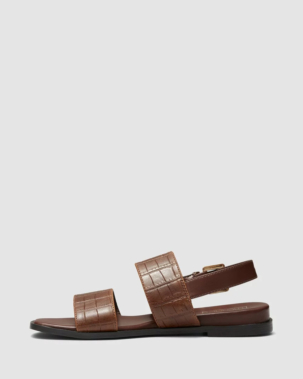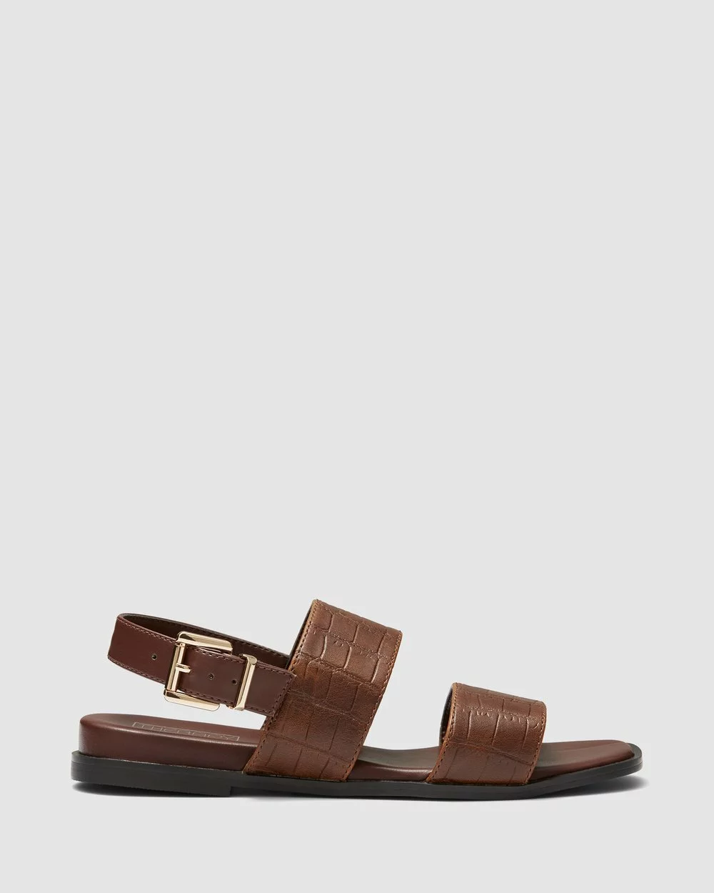Sparrow by Therapy is a wardrobe essential this summer! This pair features two croc embossed non-leather straps across the upper and an ankle strap and buckle to fasten.