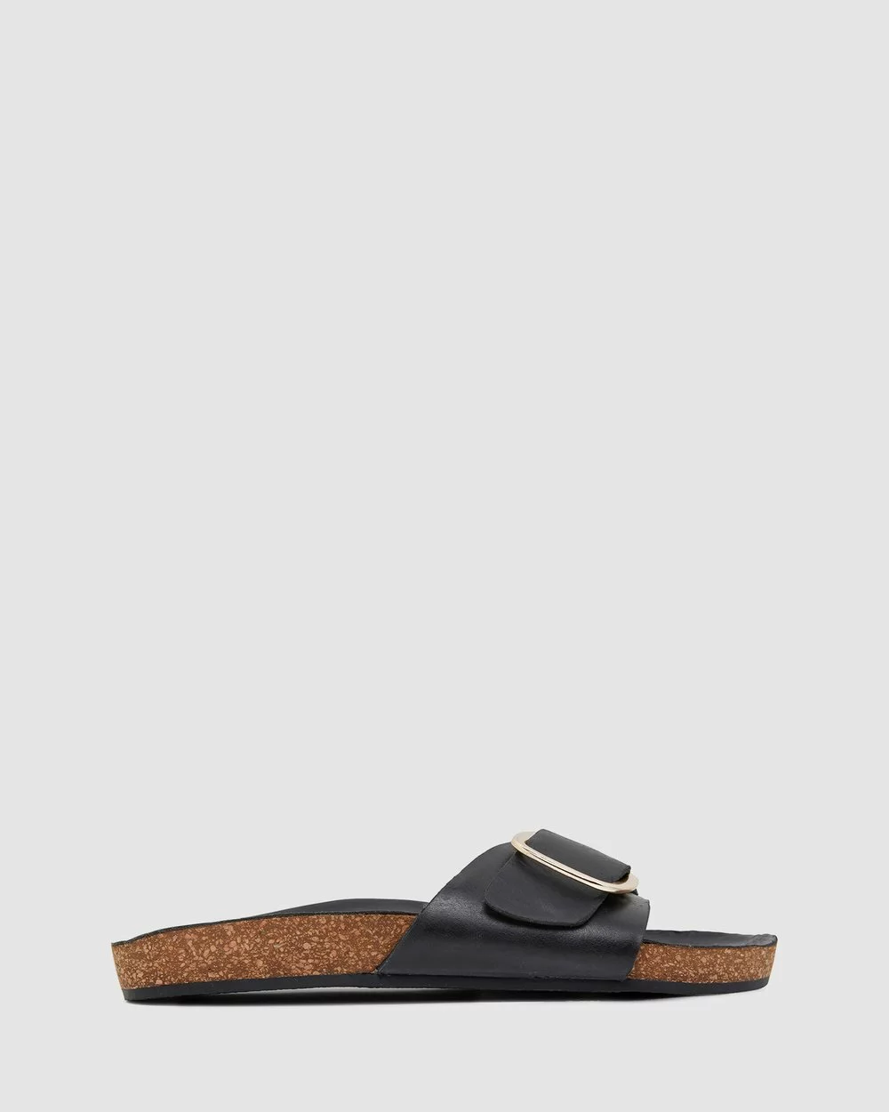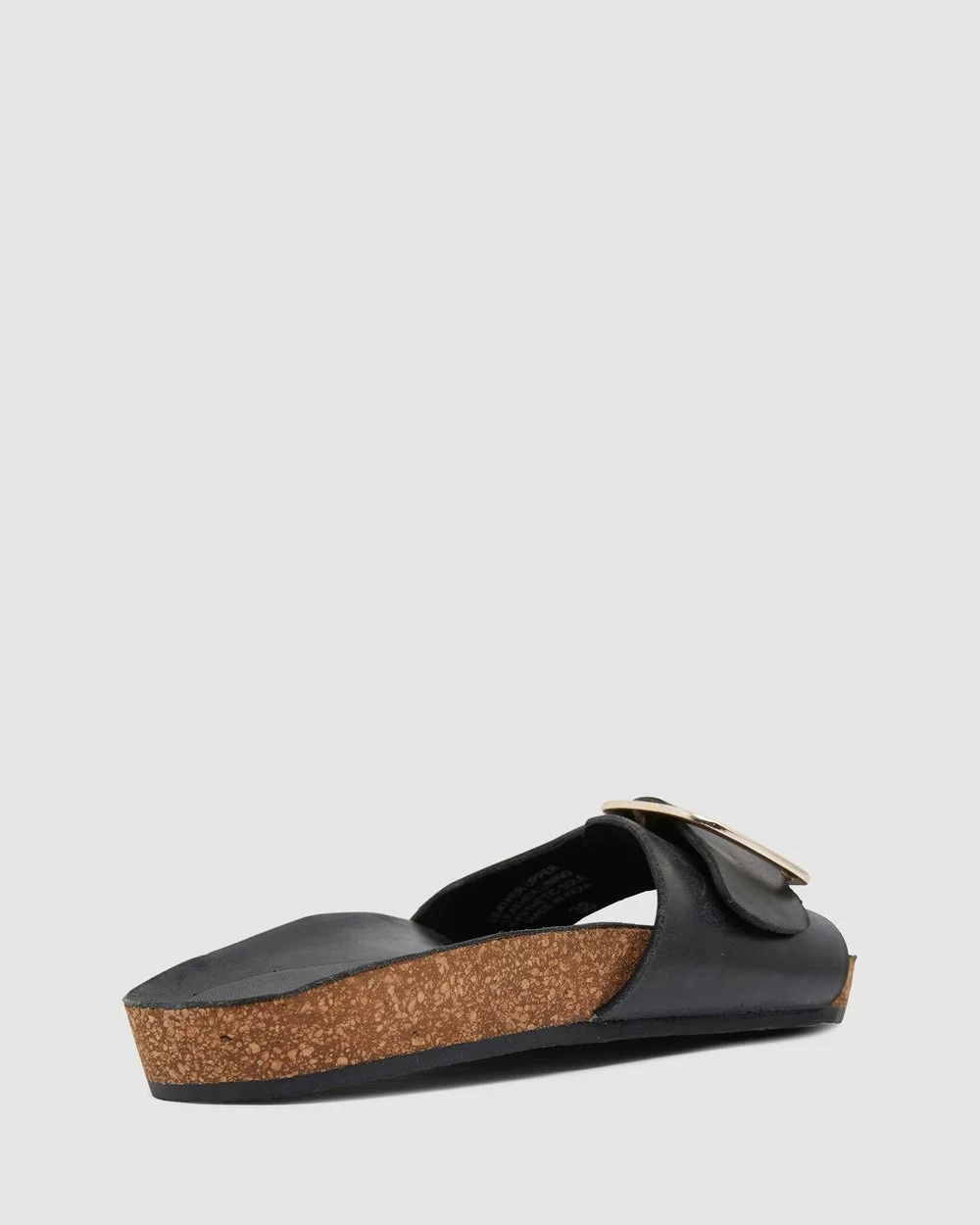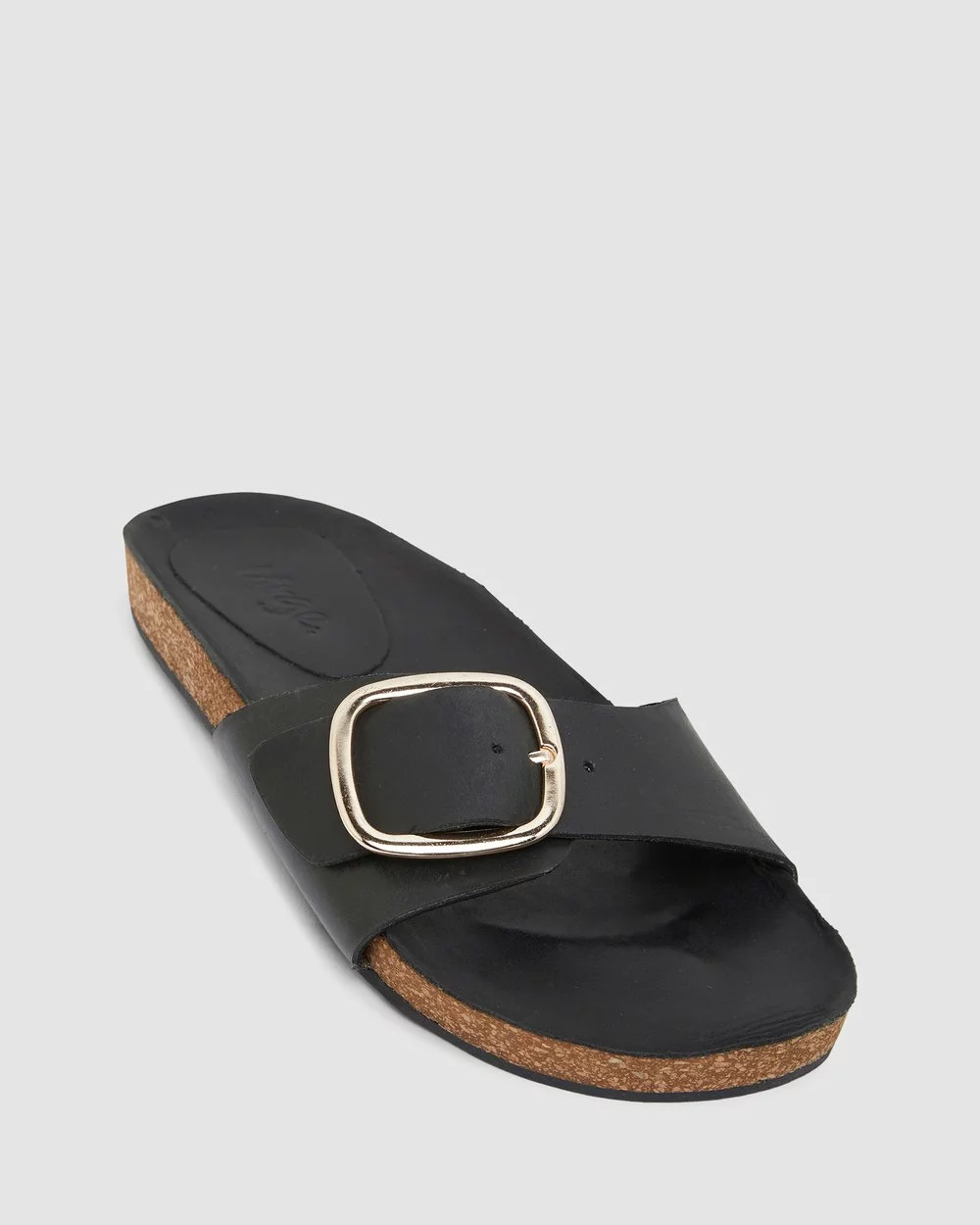 The Anjie slides by Urge Footwear offer style and comfort. Made with black oily leathers, this slide has a single band upper with large gold buckle to easily adjust to your best fitting. It sits comfortably on a moulded cork foot bed, lined with a matching oily leather insole.