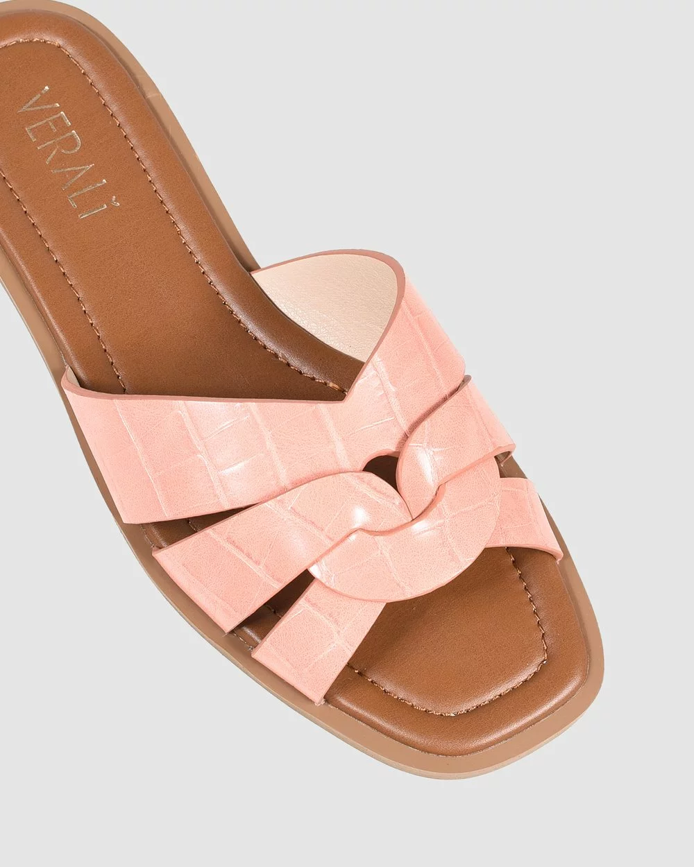 – Features: Croc-embossed design, cushioned insole, looped straps.