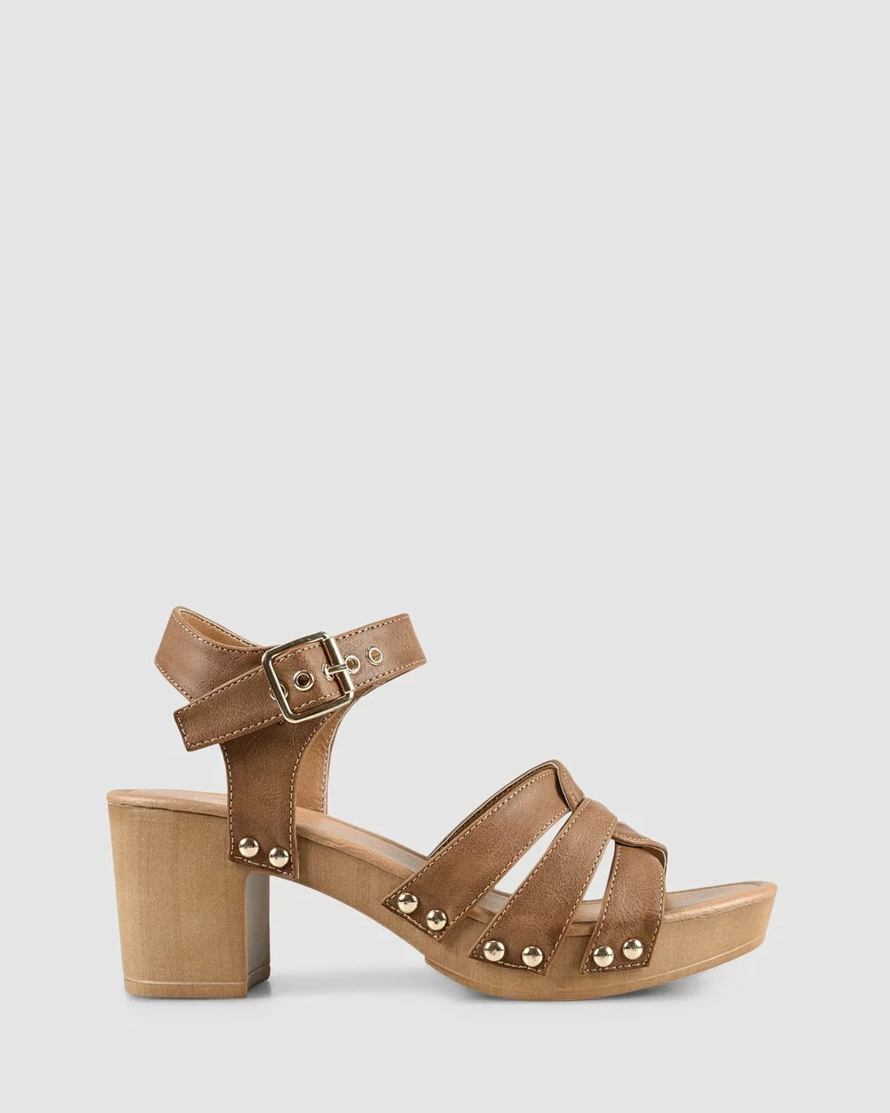 – Features: clog style wedge heel, gold press stud hardware, gold eyelets, woven upper straps.