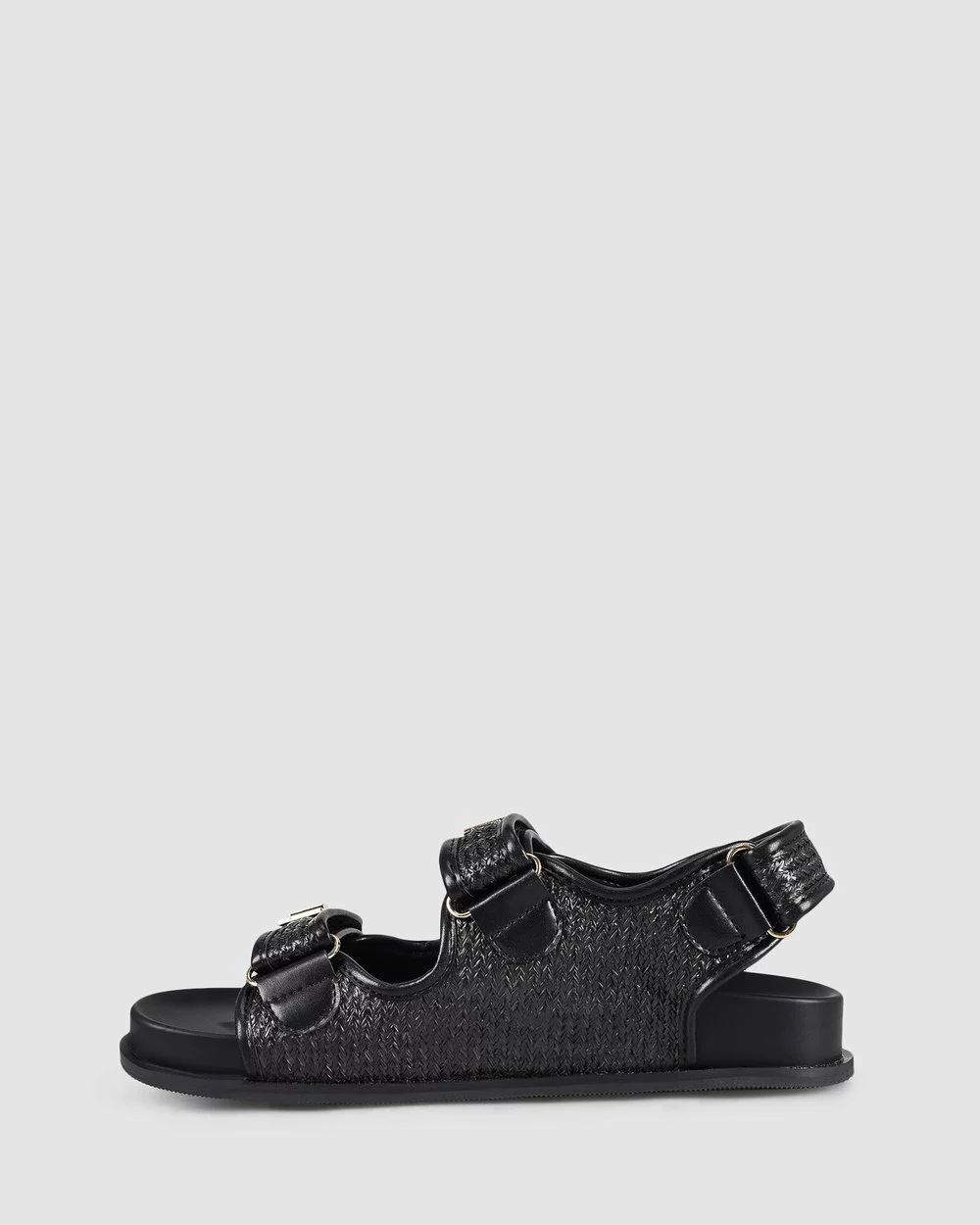 – Features: Cushioned footbed, three adjustable straps, gold details.
