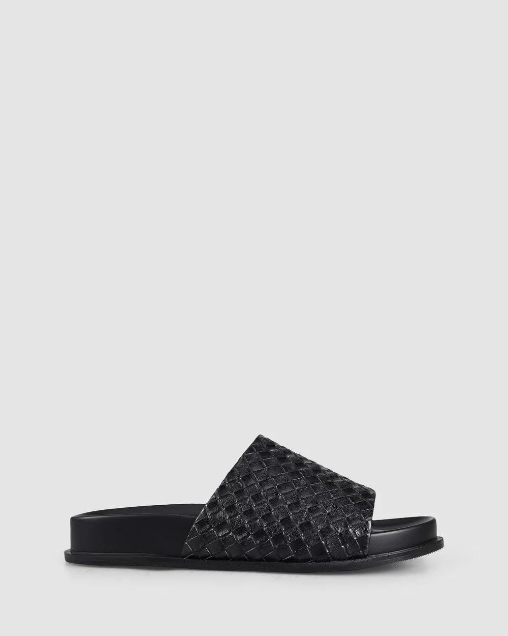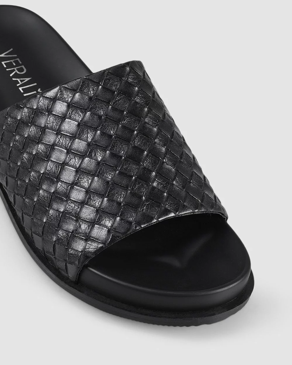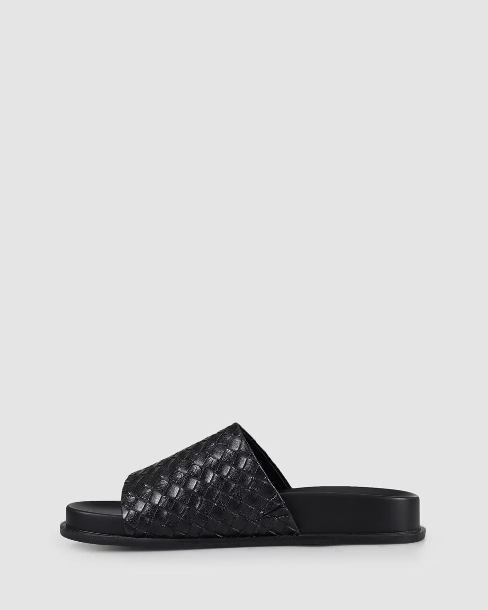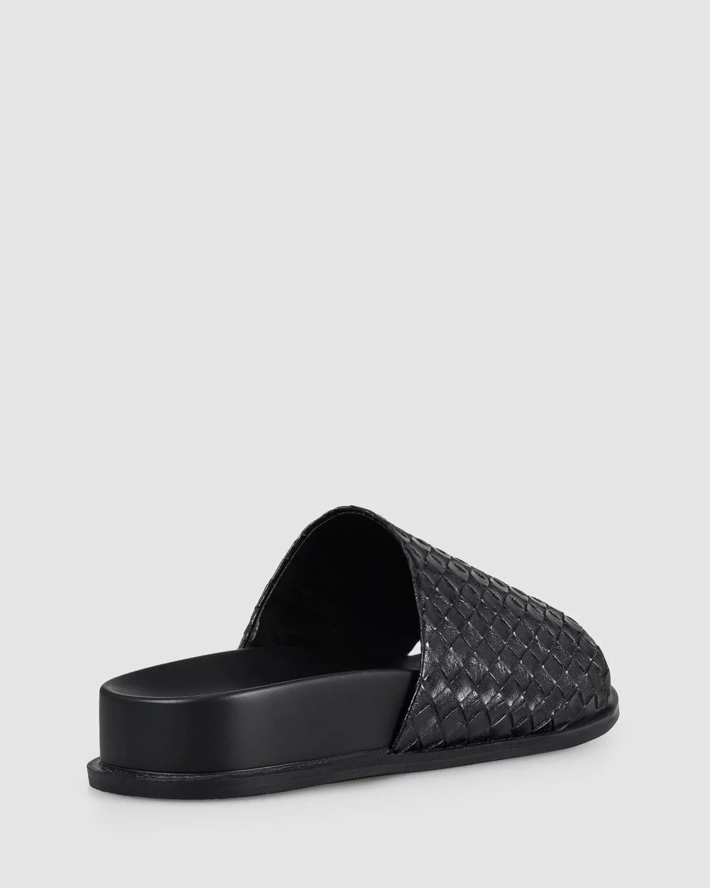 – Features: Elevated platform sole, padded footbed, woven upper detailing.