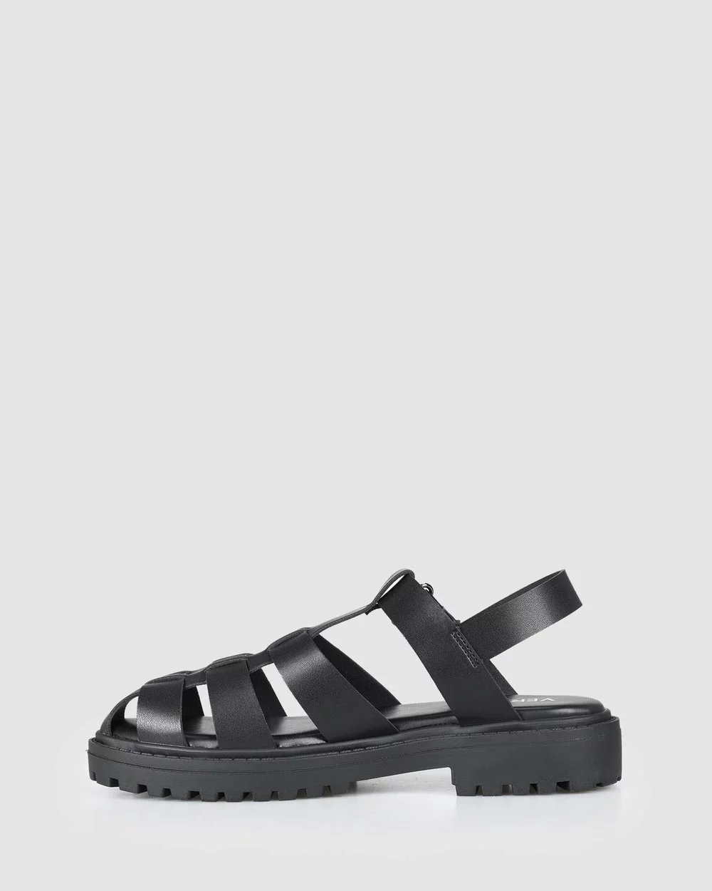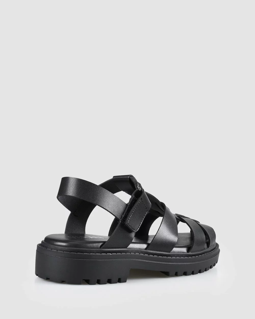 Features: Smooth upper, caged design, chunky track sole & velcro ankle straps.