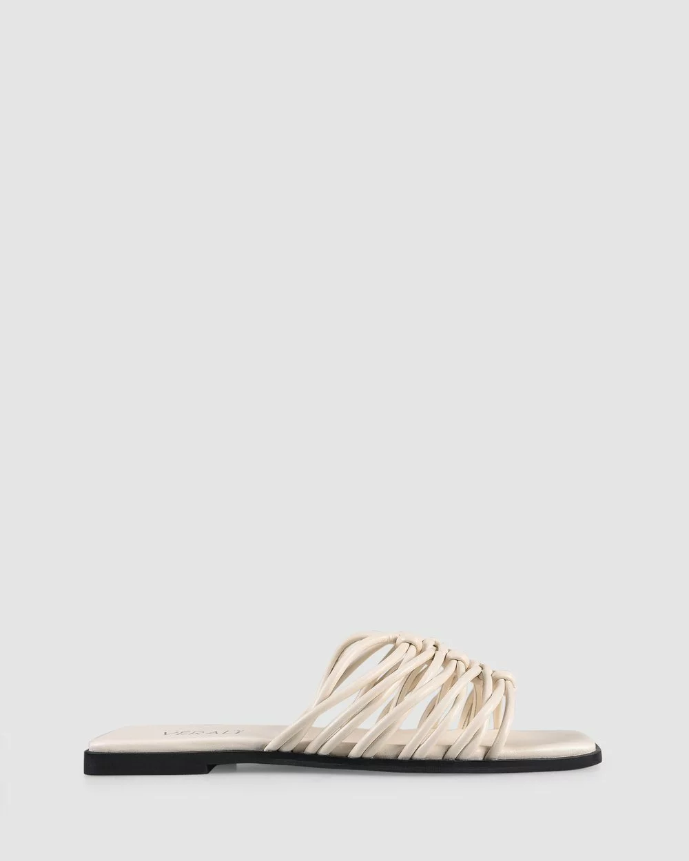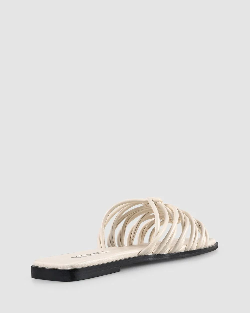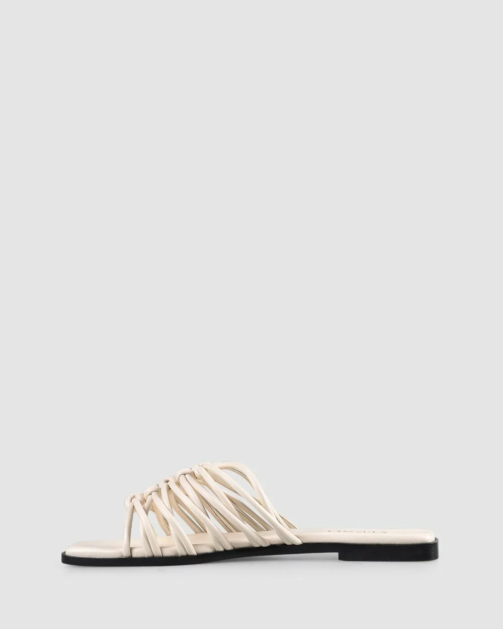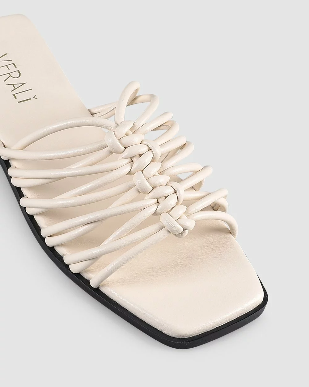 – Features: Strappy criss-cross knotted upper, padded insole and softly squared toe.