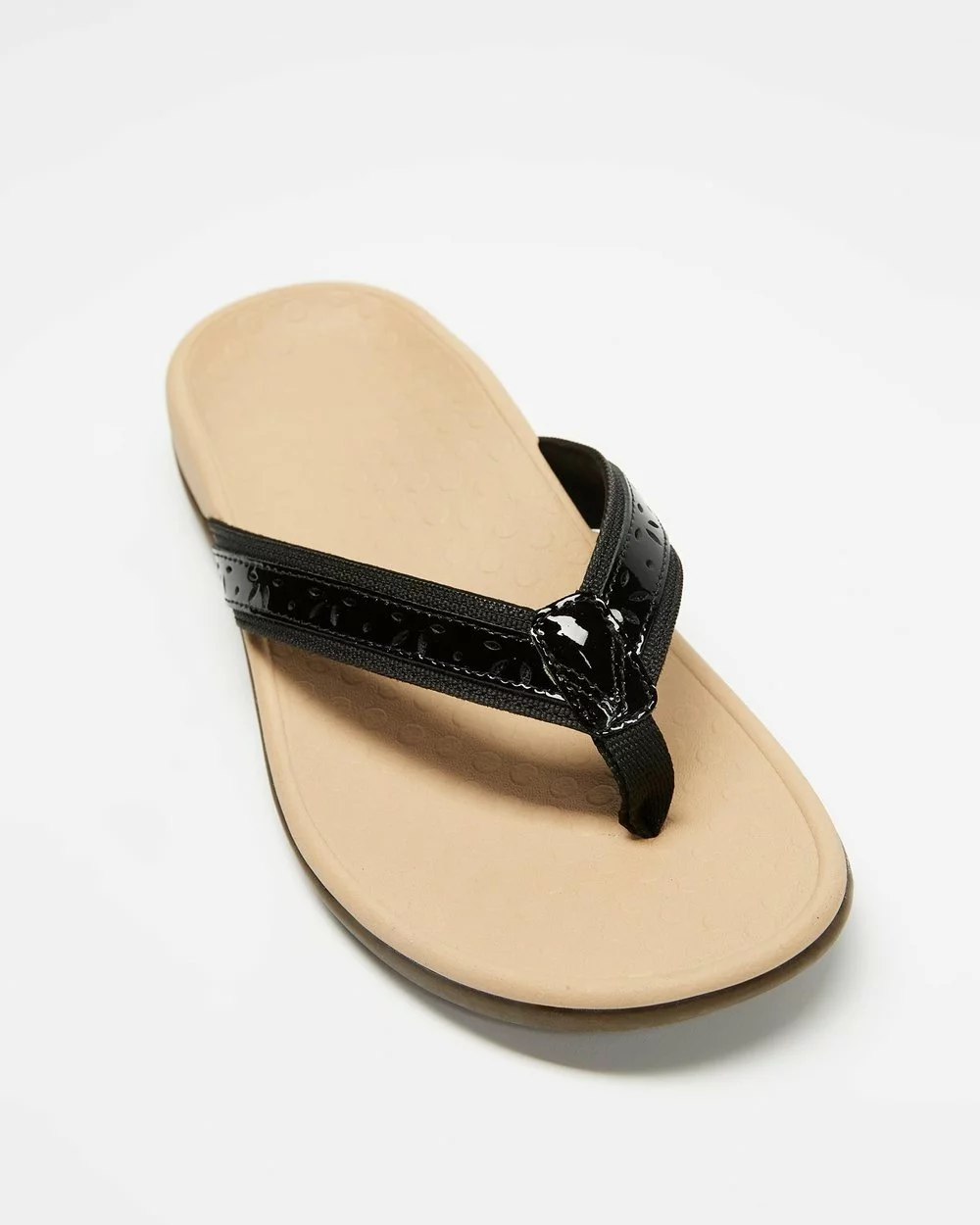 Look to reduce the stress on your feet and treat heel pain in style with the easy to slip on, feminine embossed Vionic Casandra Toe Post Sandals .