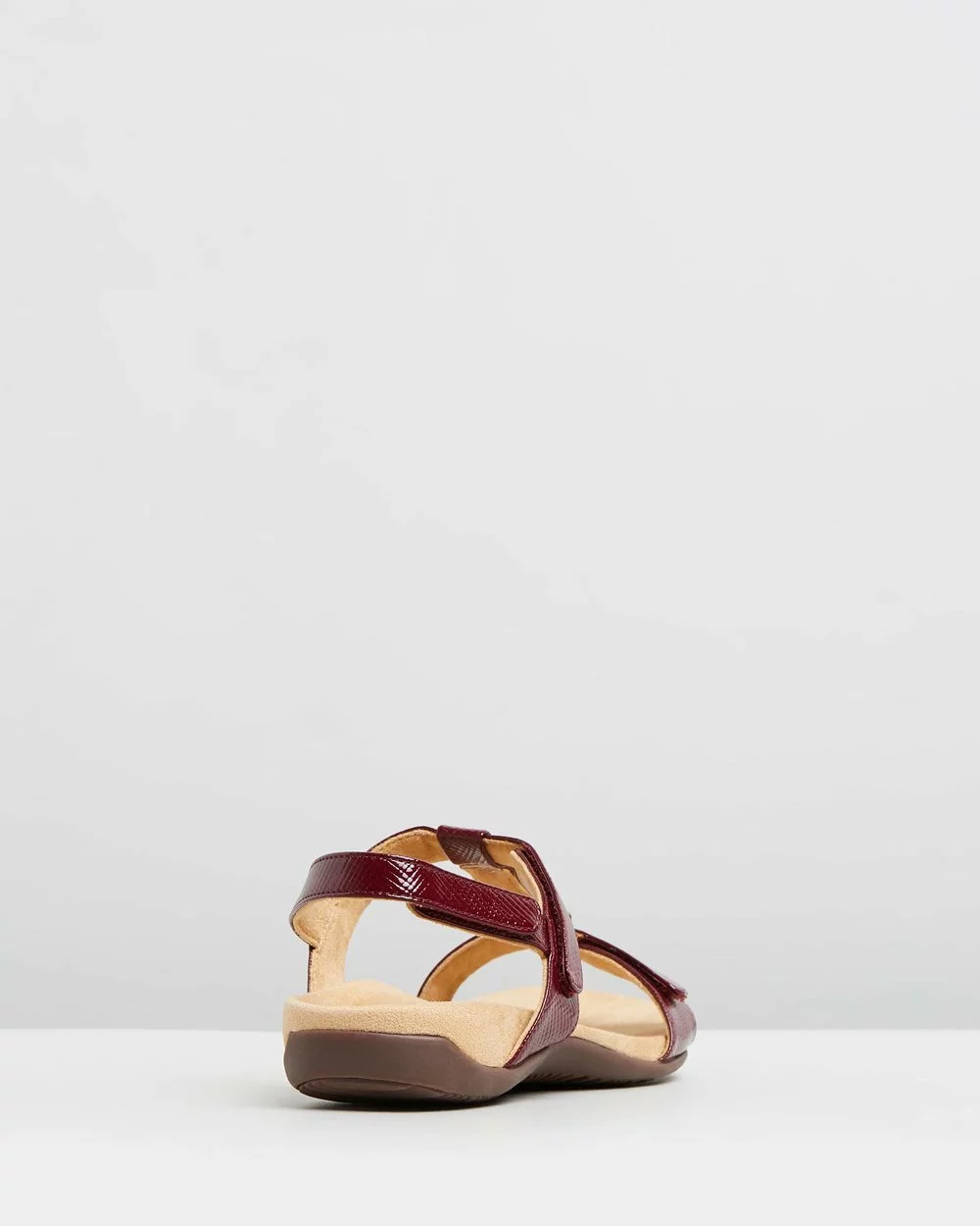 – Faux-patent-leather upper
