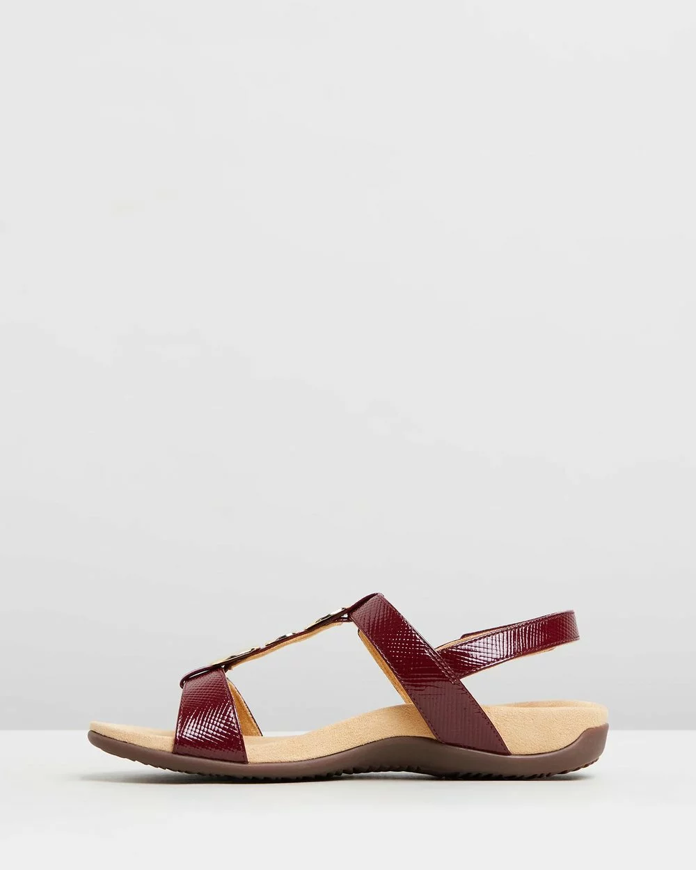 Vionic are revolutionising the footwear industry with their limitless innovation in footwear technology that never skimps on style — their Farra Backstrap Sandals are no exception with their moulded footbed, sleek t-bar design and hammered gold-disk accents.