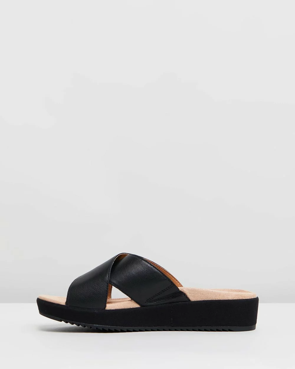 – Wide crossover strap vamp