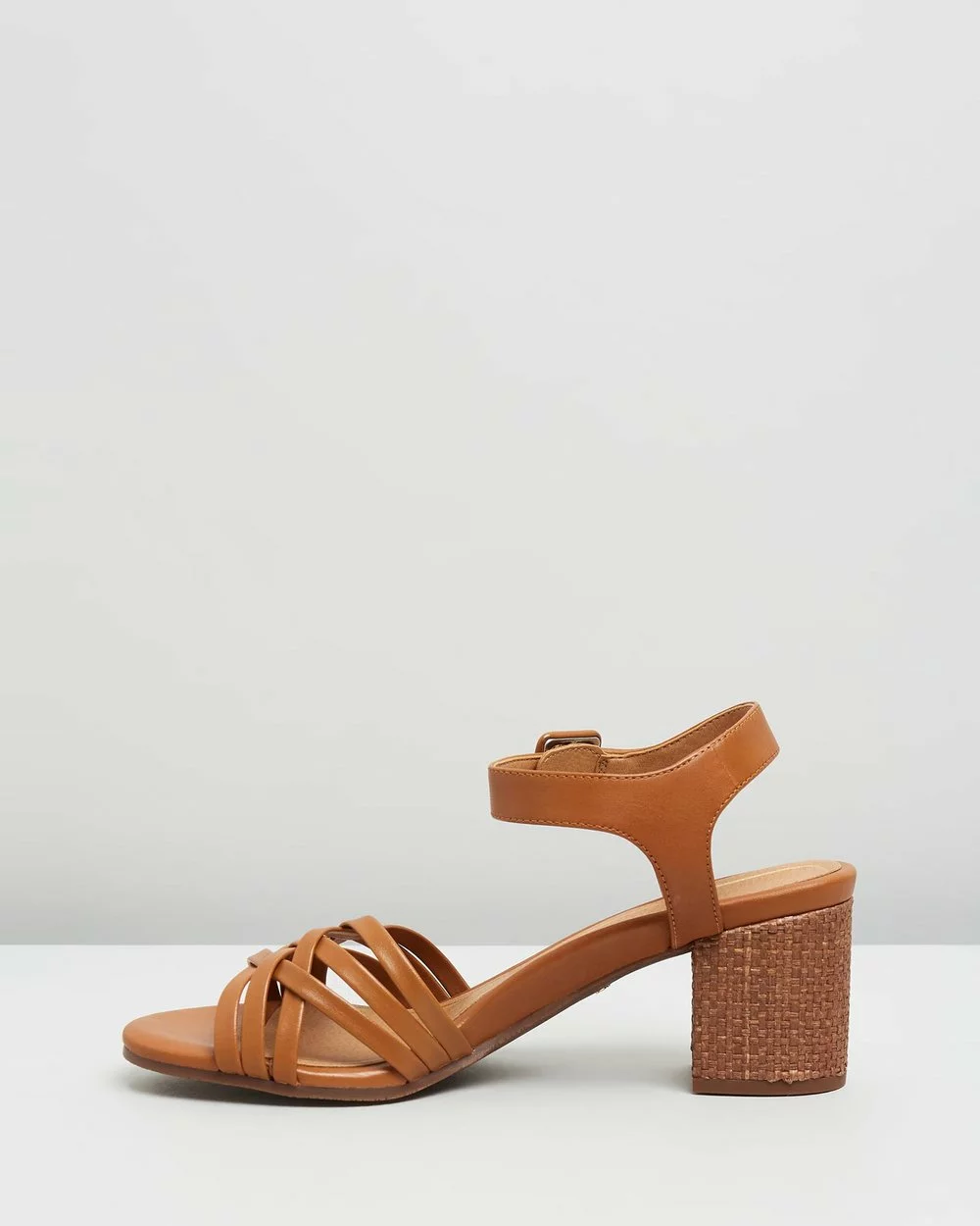Worked in genuine leather and set atop a generous block heel, the Peony Heeled Sandals from Vionic offer a sultry boost to cropped trousers and calf-skimming skirts.