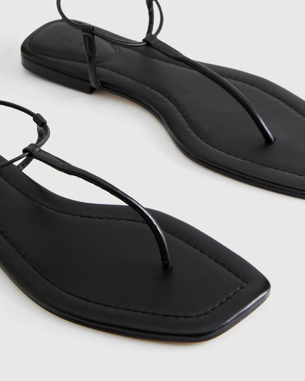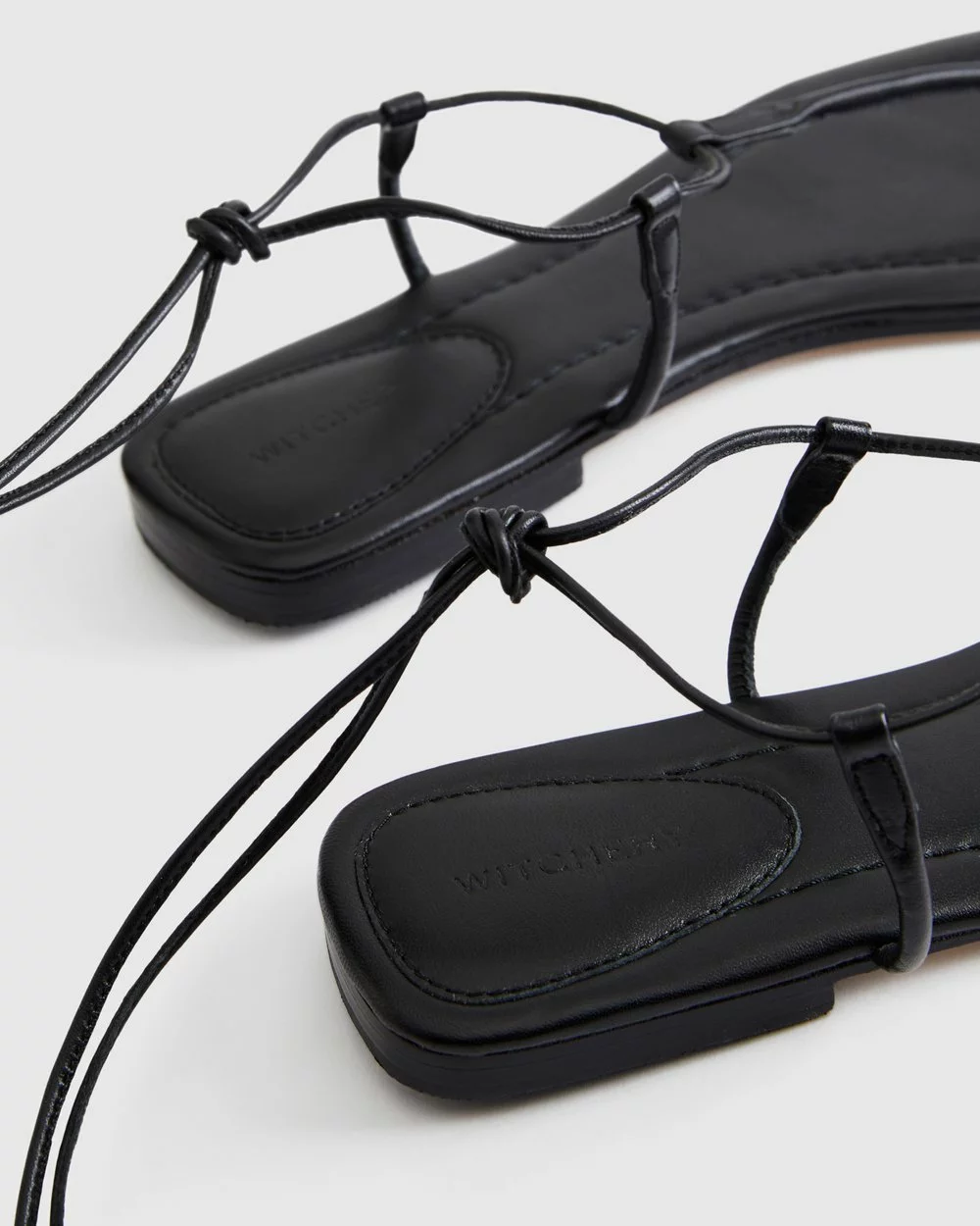 – Strappy leather sandal with thin, wrap-around ankle ties