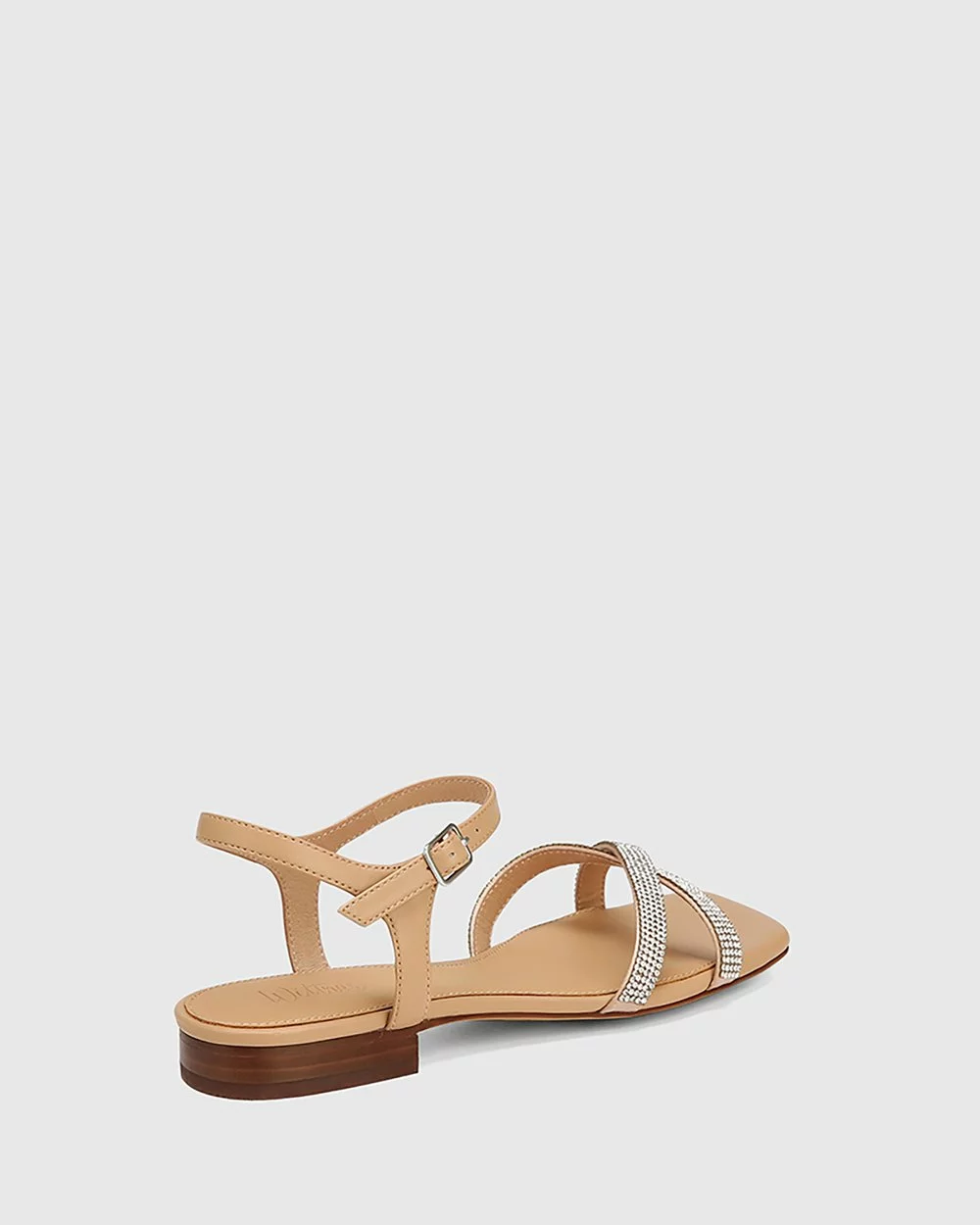 Sand leather and diamantes create a look that is glamorous and chic in the Aliyah Leather Diamante Trim Sandals by Wittner.