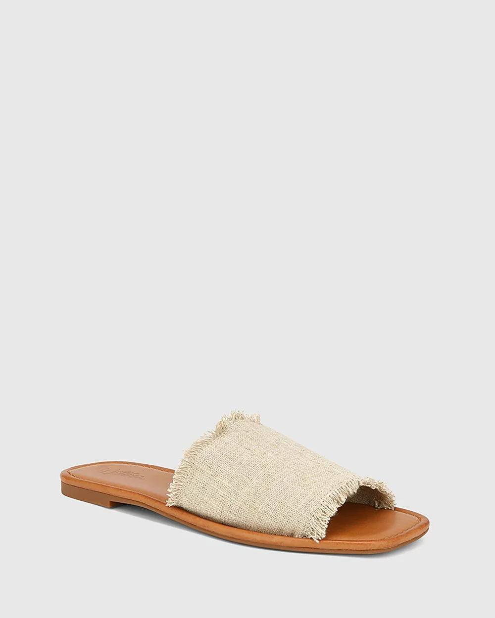 The Barron Linen Flat Slides by Wittner in natural linen are the perfect casual chic sandal that can be dressed up or down. Natural linen gives this slip on style a holiday-ready feel and double density padding means you can look AND feel your best.
