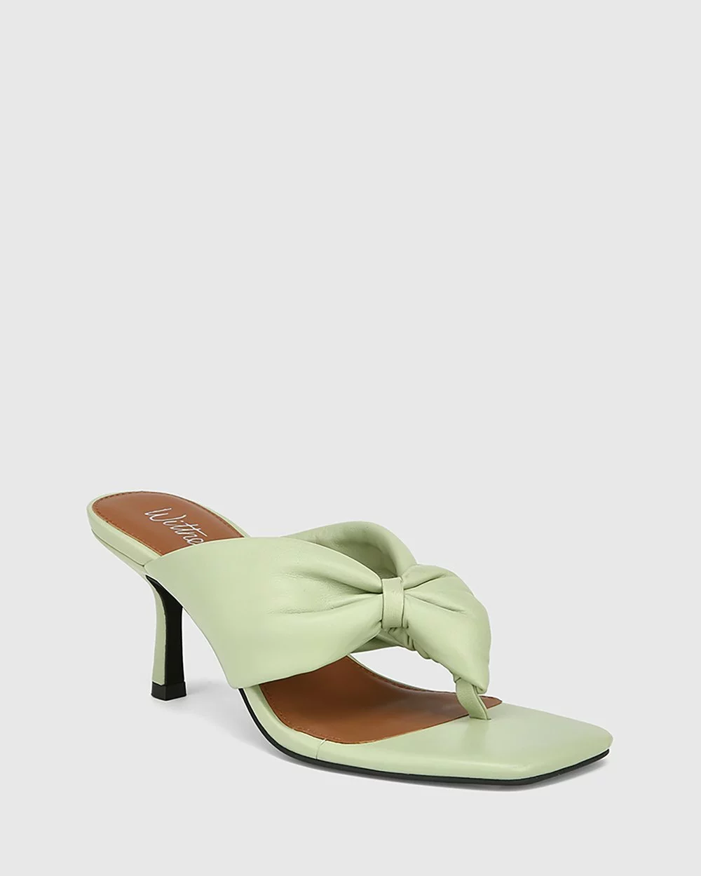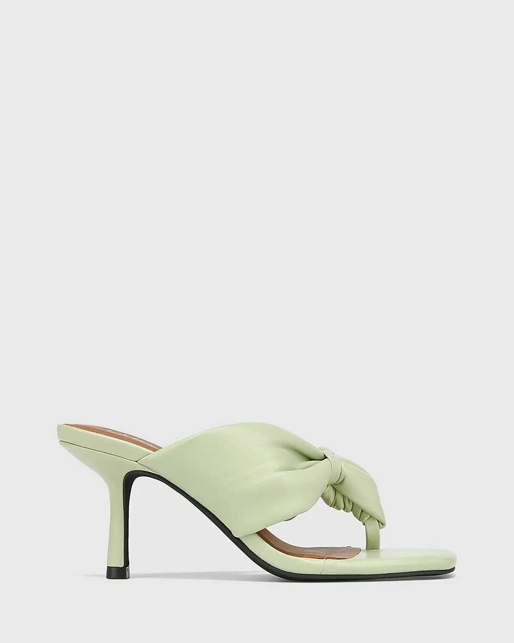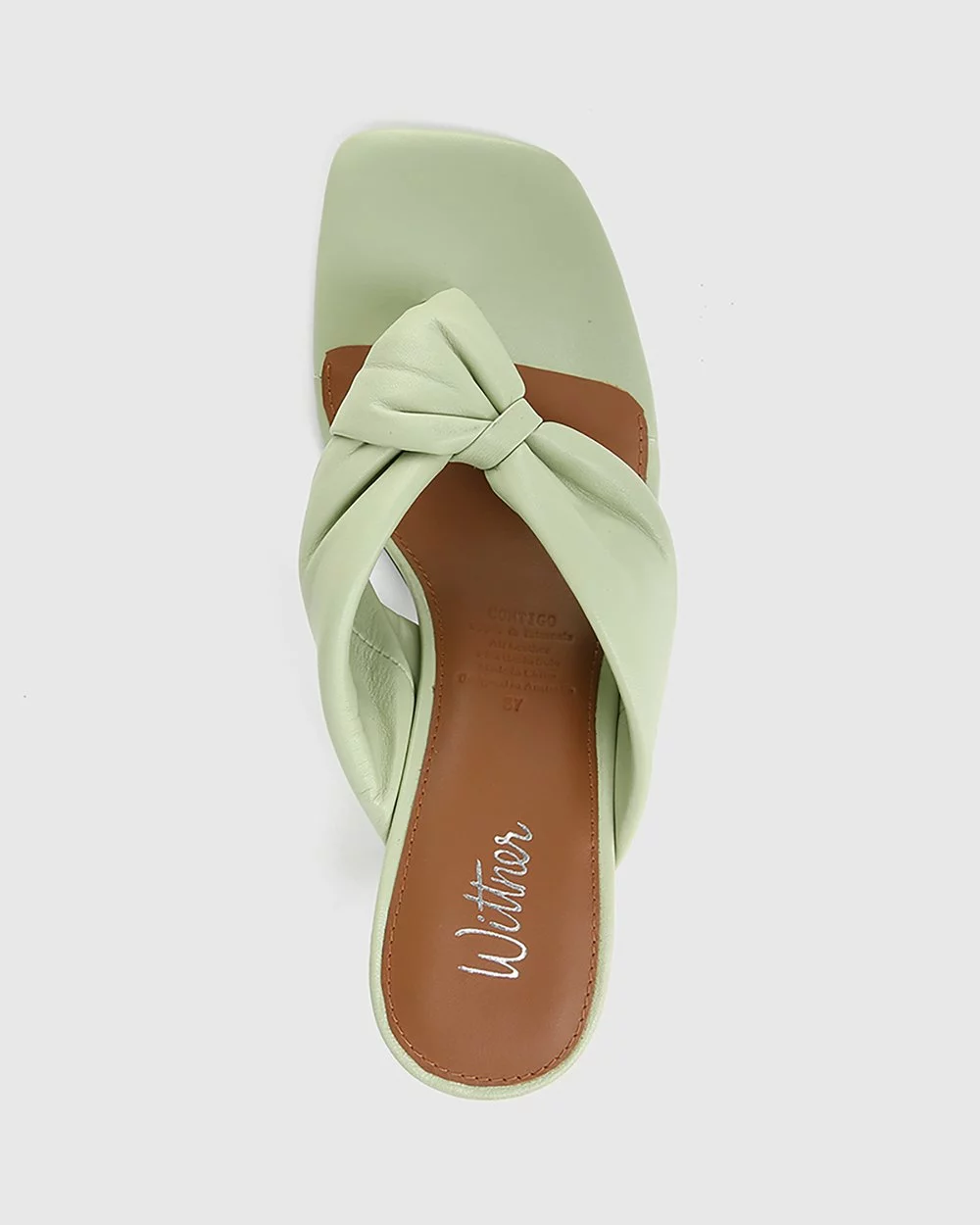 The Contigo Leather Stiletto Heel Sandals by Wittner in leaf green leather are a gorgeous party shoe in a chic colour palette.