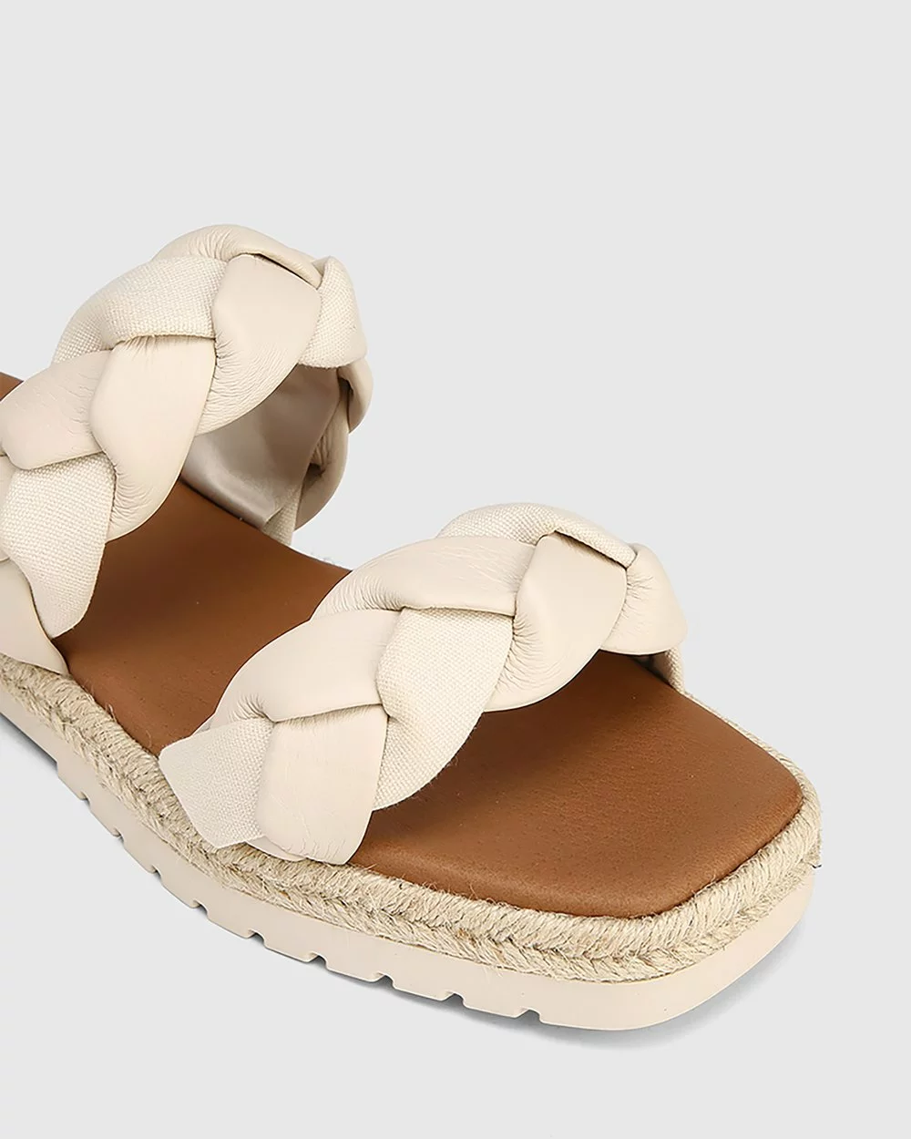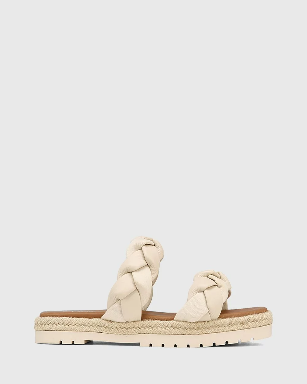 The Dalas Leather And Canvas Double Strap Slides by Wittner were designed with summer holidays in mind, featuring vintage ivory braided leather straps and a jute-wrap flat heel.
