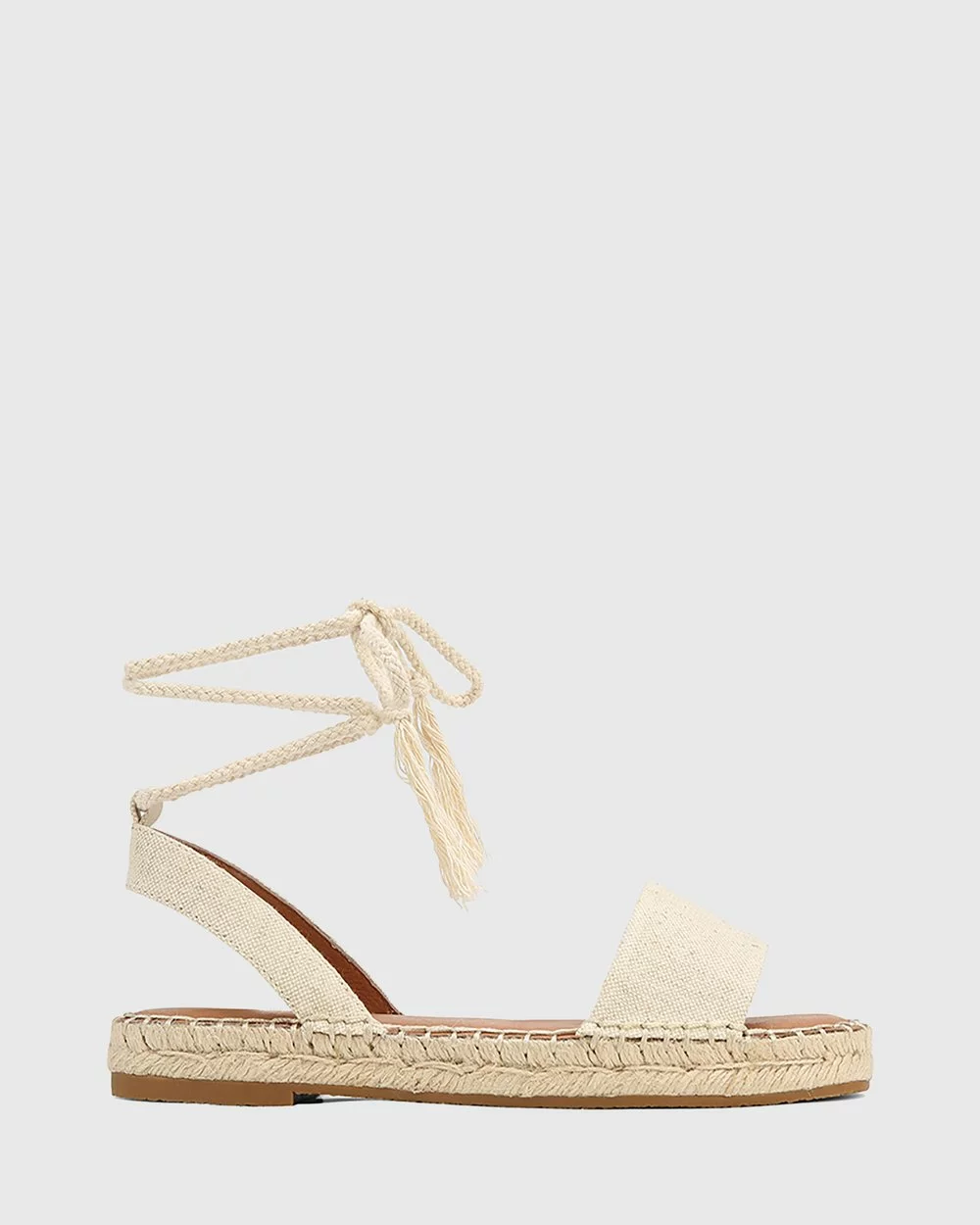 The Dorenzo Canvas Espadrille Sandals in beige are a casual warm-weather style with a rope tie and espadrille-style heel.
