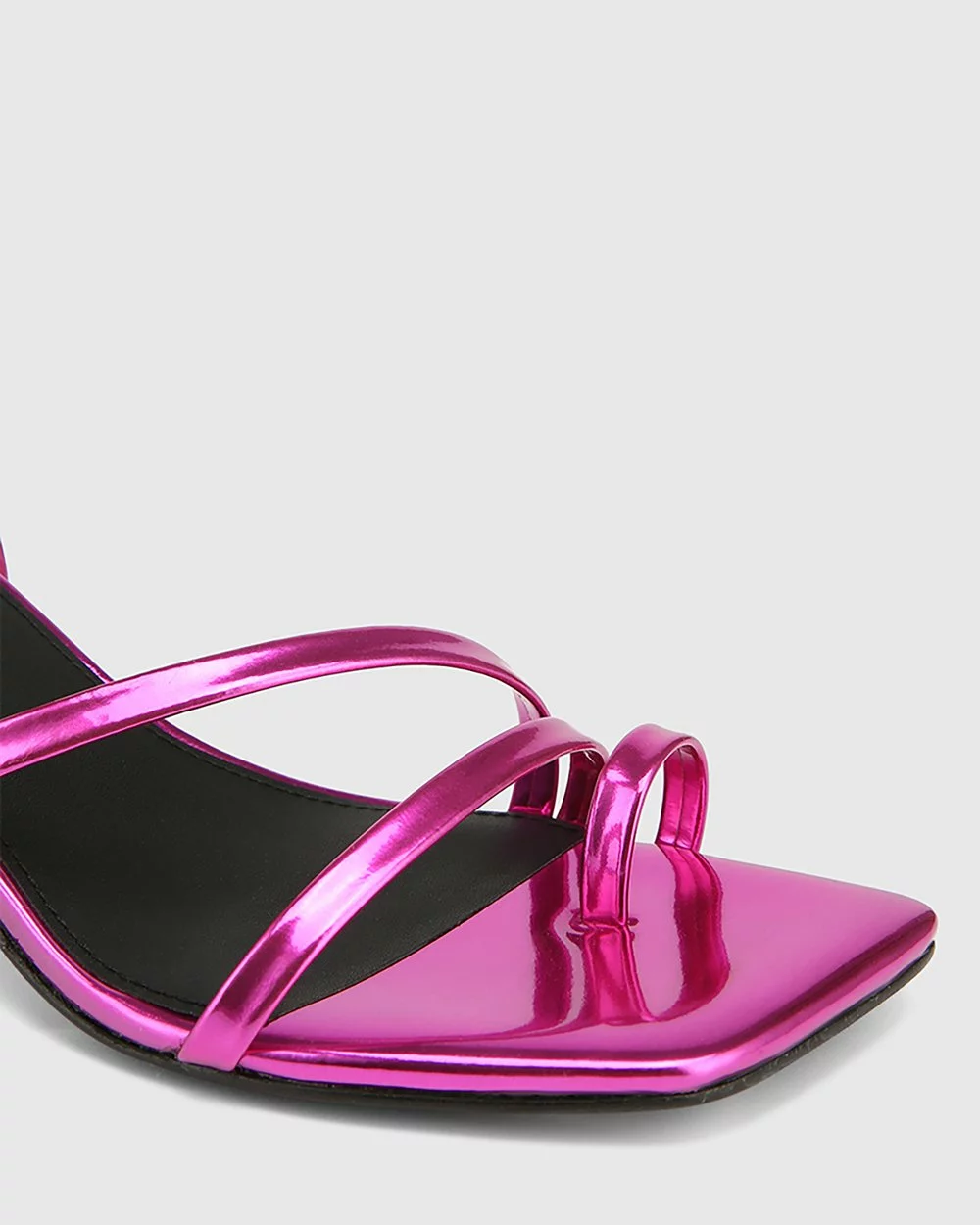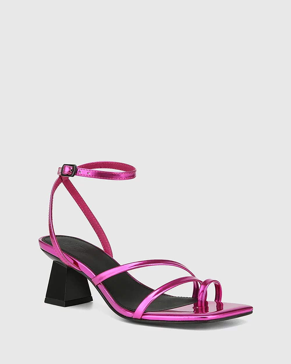 Meet the showstopping Kaiya Leather Strappy Sculptured Heel Sandals by Wittner featuring an exclusive synthetic mirror patent leather.