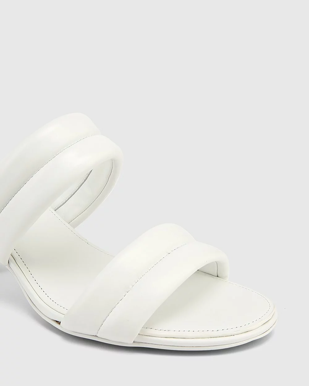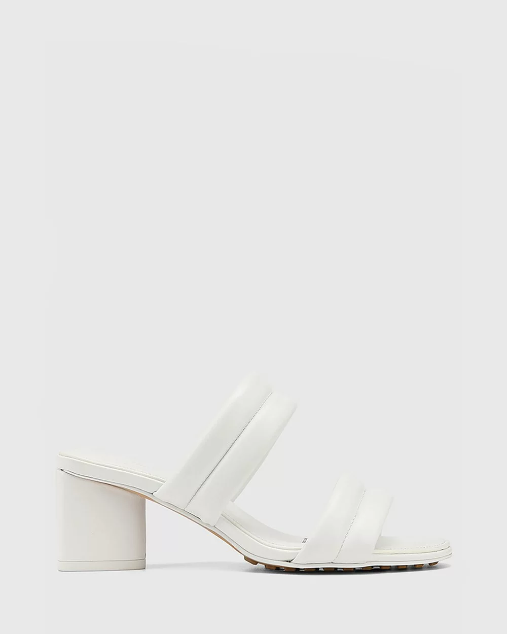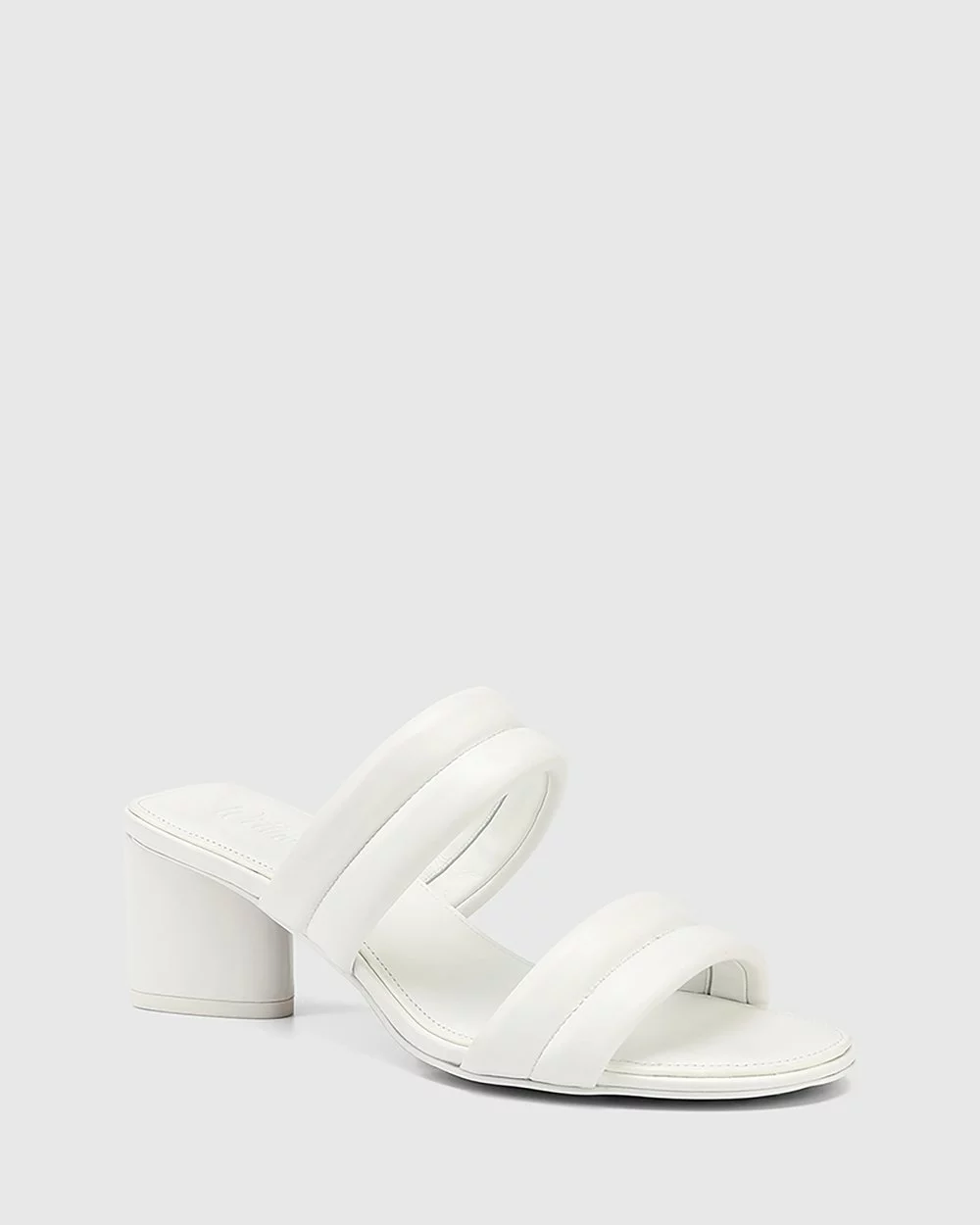 A white leather sandal just in time for warm weather, the Million Leather Triangular Heel Sandals by Wittner are stylish and comfortable.