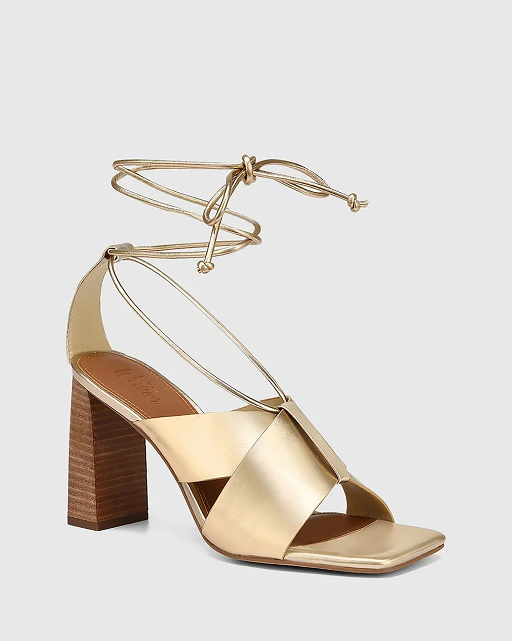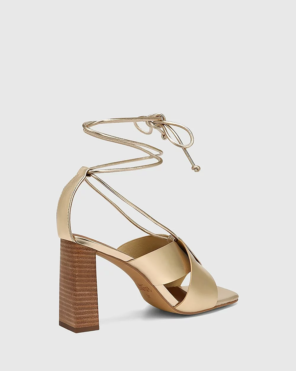 Have your metallic moment in the Rapunzel Leather Block Heel Sandals by Wittner in Tuscan gold.