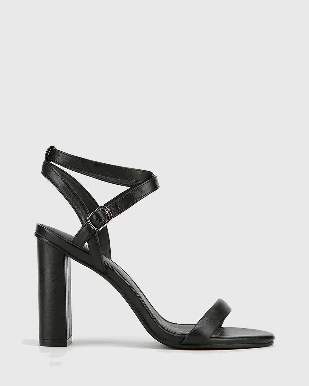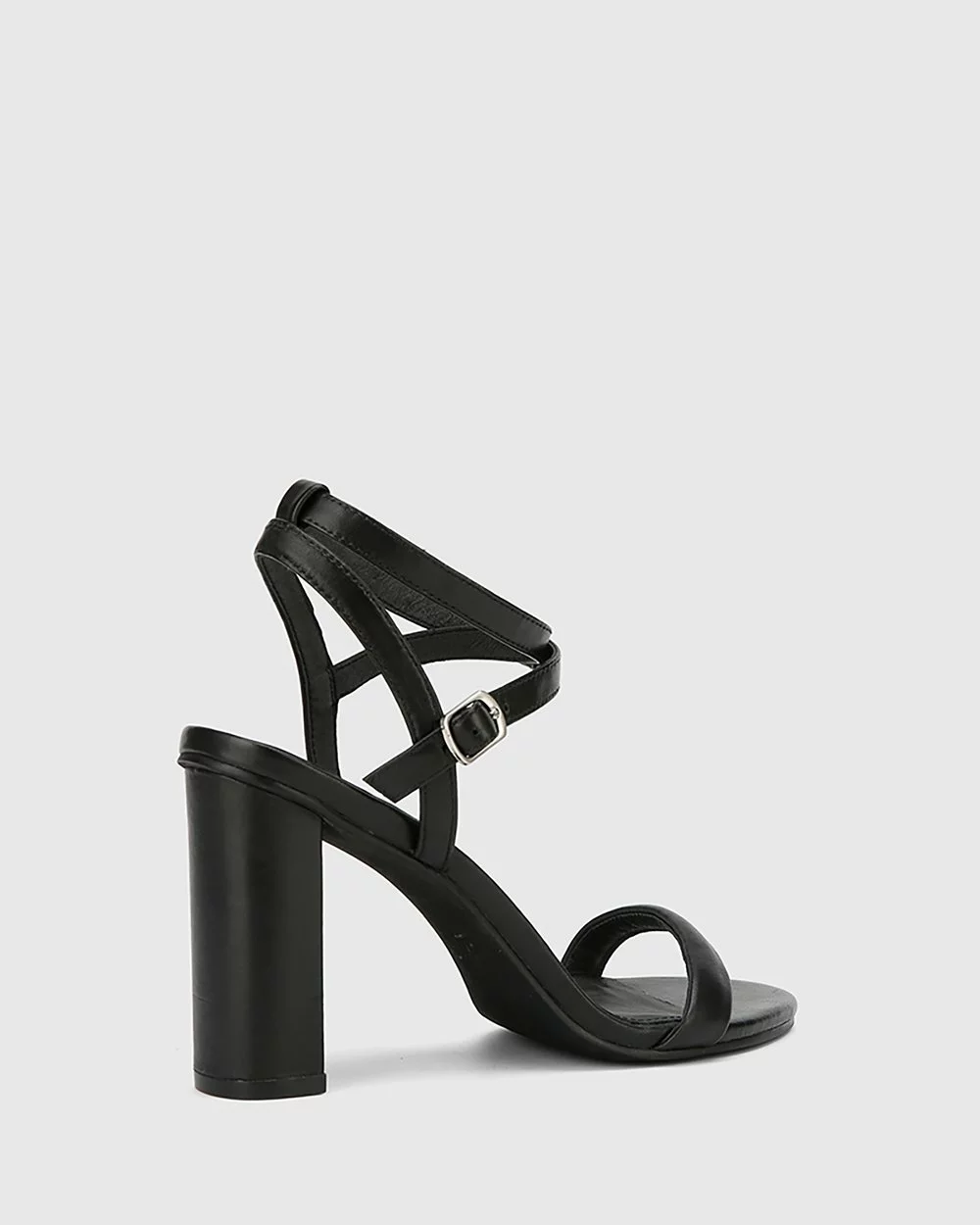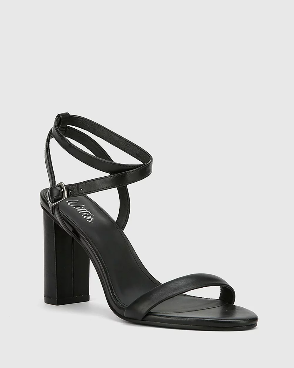 The Raven Leather Open Toe Block Heels by Wittner feature a delicate strappy upper and a chunky tall heel.