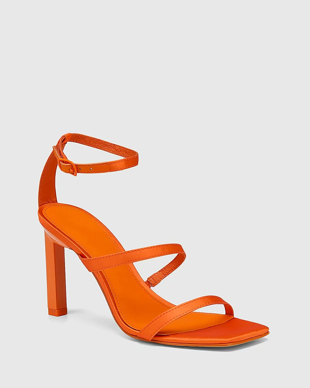 A gorgeous strappy sandal in highlighter orange, the Renai Recycled Satin Strappy Sandals by Wittner tick all the boxes for occasion dressing.