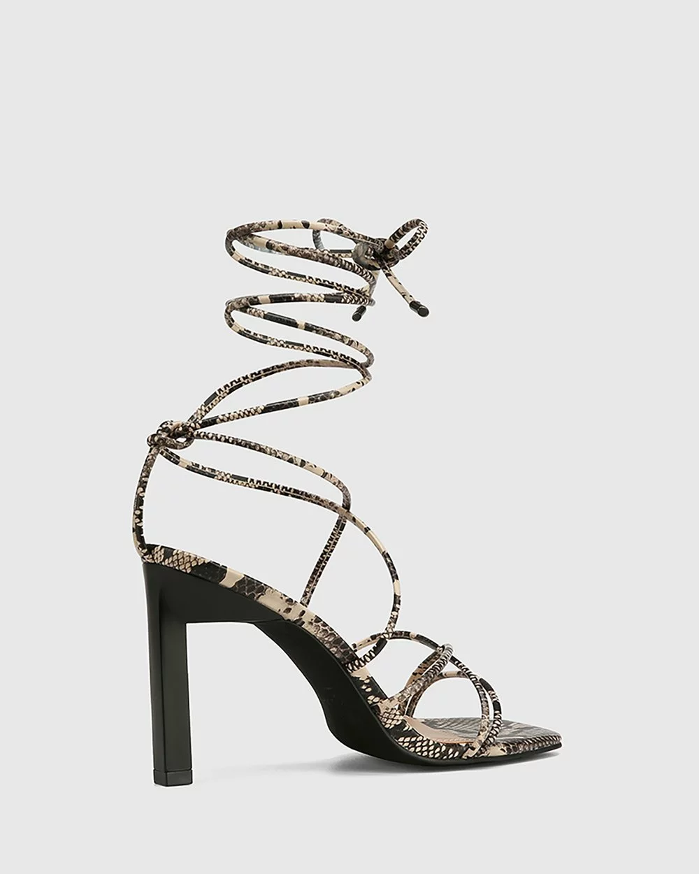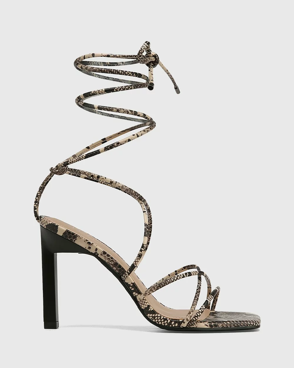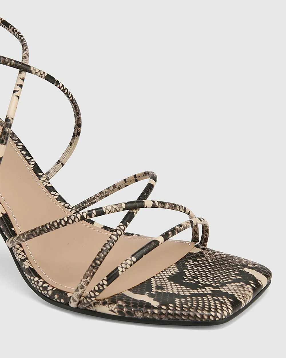 The Risilla Leather Strappy Sandals by Wittner feature snake-print embossed leather, a strappy design and a square toe.