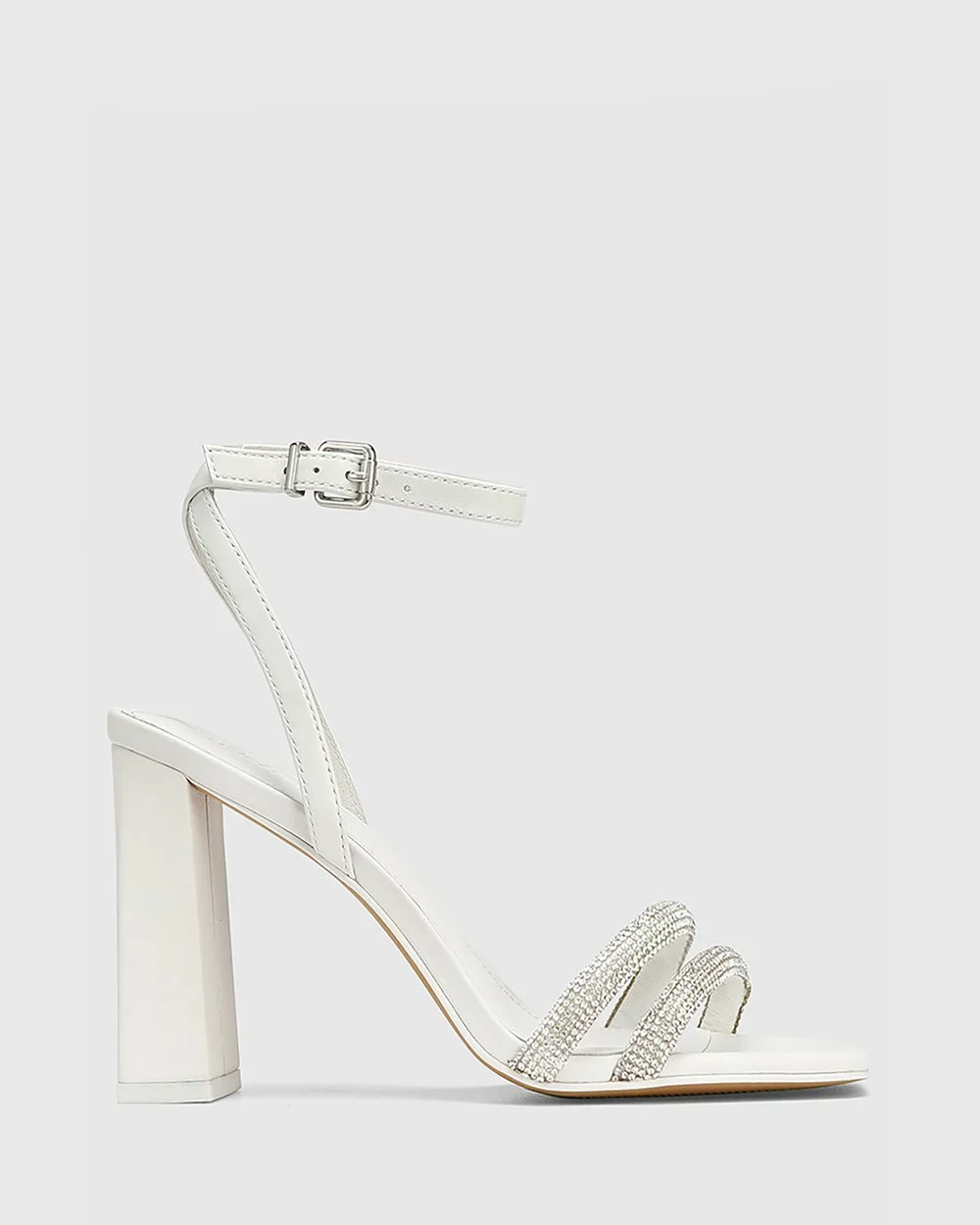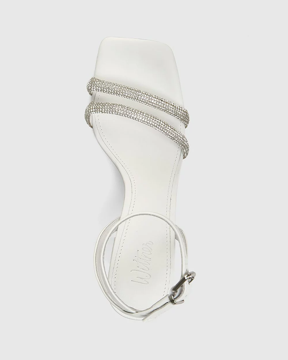 The Rosalie Leather Diamante Straps Sandals by Wittner combine fashionable elements like a square toe with an elegant finish thanks to delicate diamante covered straps.