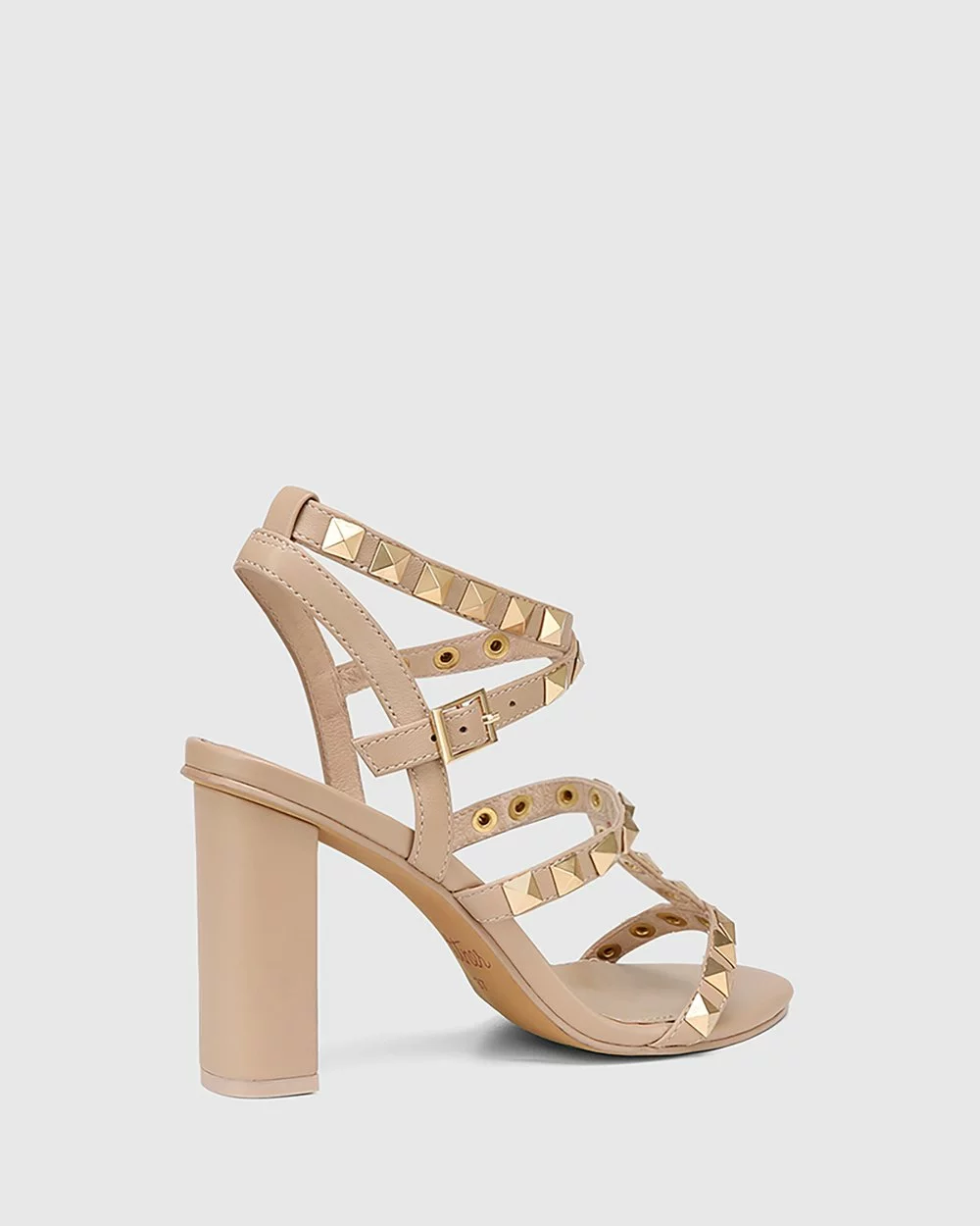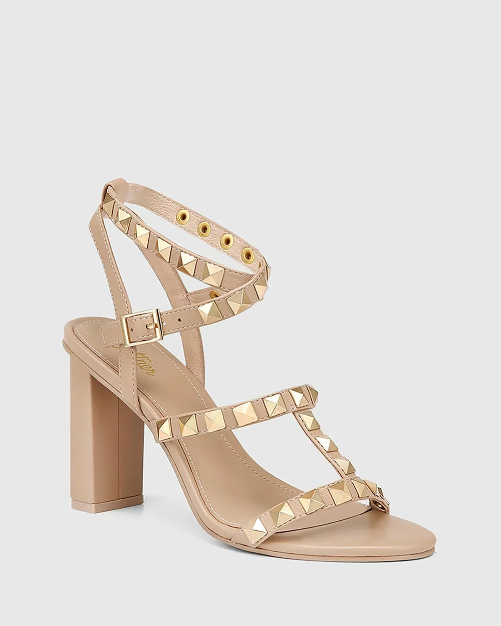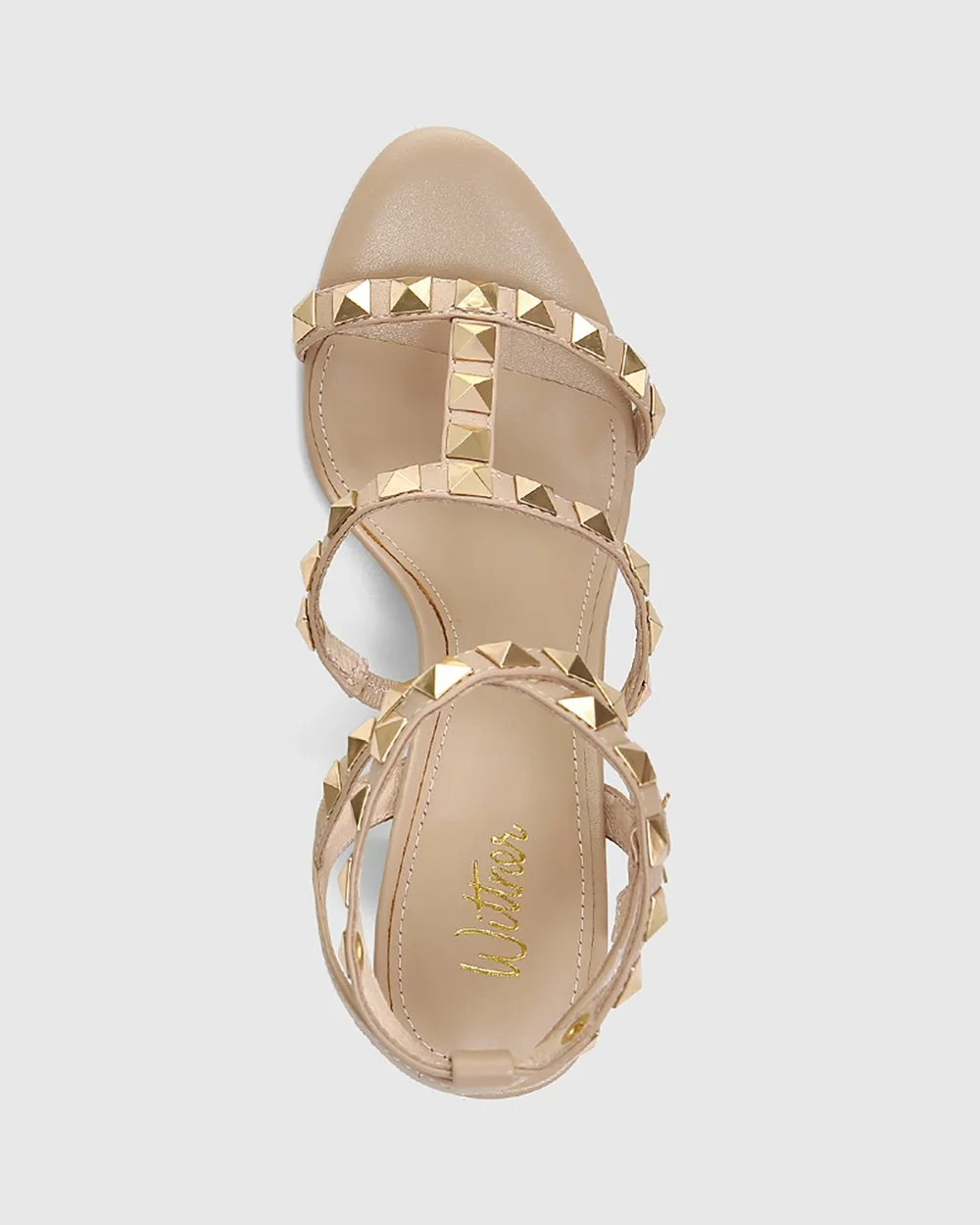 Make a statement in the Rye Leather Stud Sandals by Wittner in new flesh leather.